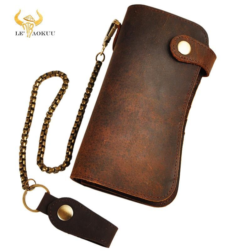 1X Dargon Tiger-Bolso de mano de cuero para hombre cadena de hierro organizador cartera diseno 1088-db