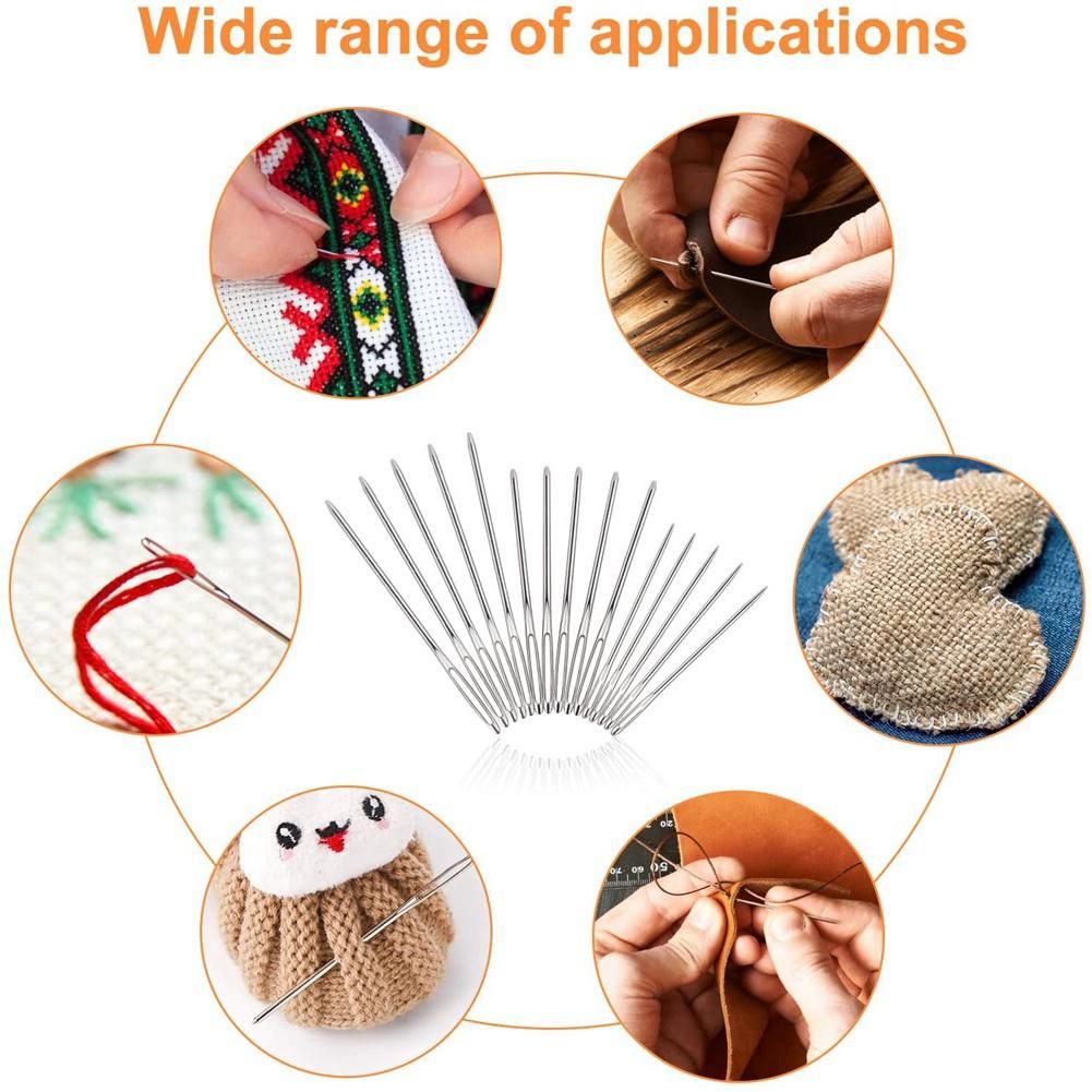 [Wide range of applications]: Darning needles for wool, crochet and yarn knitting. the needles are perfect for weaving in ends and sewing up seams on your knitting and crochet projects. It could be used for repairing a jute rug or mend vinyl upholstery and leather.
