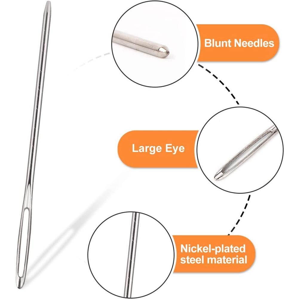 [High-quality materials]: the darning needle is made of high-quality nickel-plated steel material, It is polished enough to give a smooth stitch. the darning needle has a smooth surface, strong and durable, and can be reused.