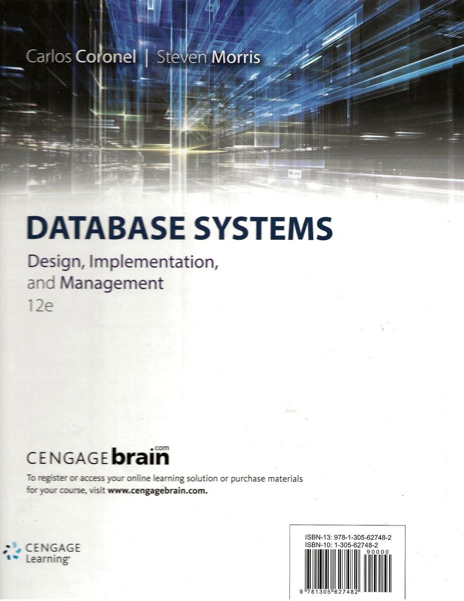 Gain a solid foundation in database design and implementation with the practical and easy-to-understand approach in DATABASE SYSTEMS: DESIGN, IMPLEMENTATION, AND MANAGEMENT, 12E. Filled with diagrams, illustrations, and tables, this market-leading text provides in-depth coverage of database design. You learn the key to successful database implementation: proper design of databases to fit within a larger strategic view of the data environment. Renowned for its clear, straightforward writing style, this text provides an outstanding balance of theory and practice. You gain the hands-on skills to make you attractive to employers. Updates include the latest coverage of cloud data services and a new chapter on Big Data Analytics and NoSQL, including related Hadoop technologies. In addition, new review questions, problem sets, and cases offer multiple opportunities to t.est your understanding and develop useful design skills.