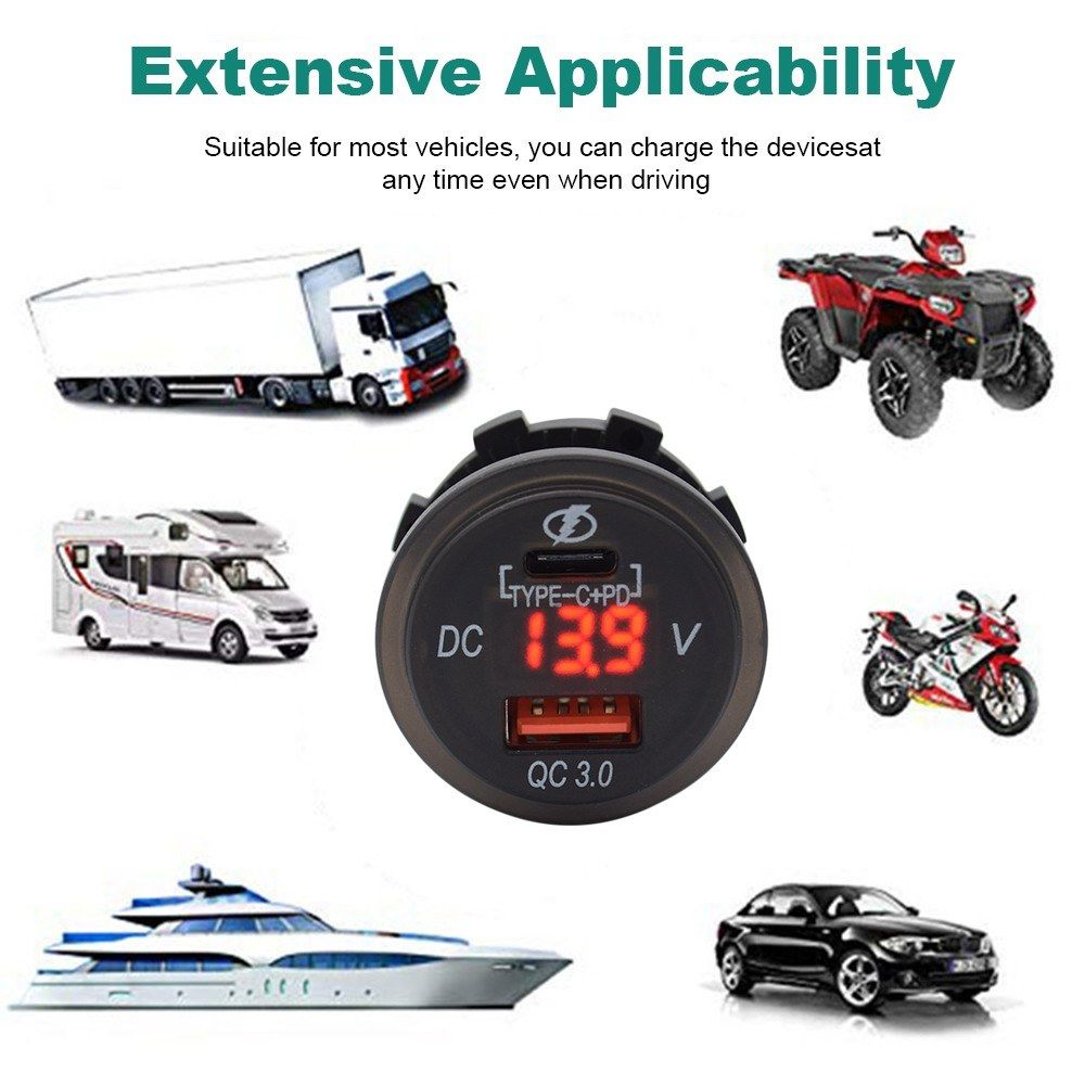 Suitable for car, boat, marine, motorcycle, RV, truck, camper, etc. Supply power for mobile phones, digital cameras, tablets and so on.