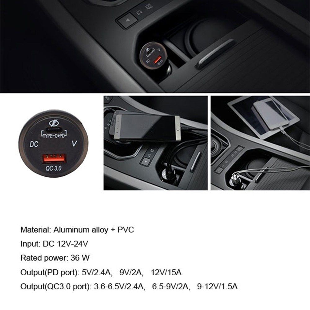 USB A Port: 3.6V-6V/3A, 6-9V/2A, 9-12V/1.5A 18 watt max