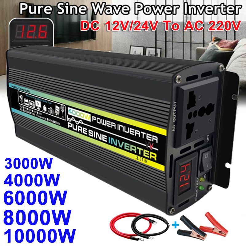 1X DC 12V/24V To 220V LED Display Car Inverter Pure Sine Wave Power Inverter Voltage Transformer Converter