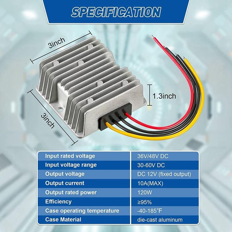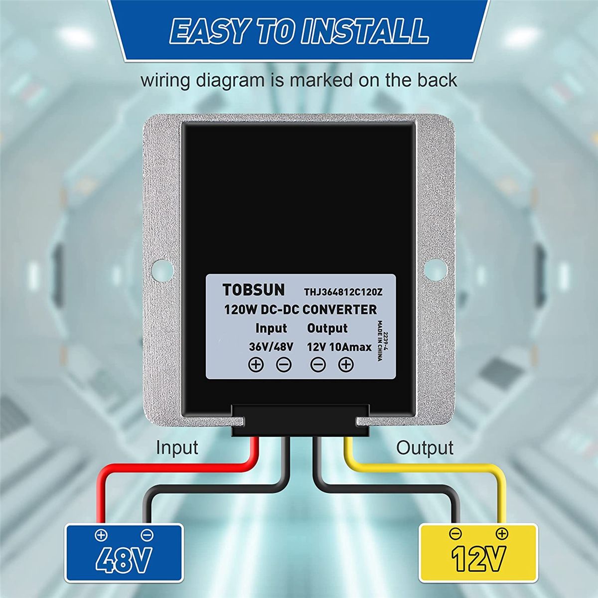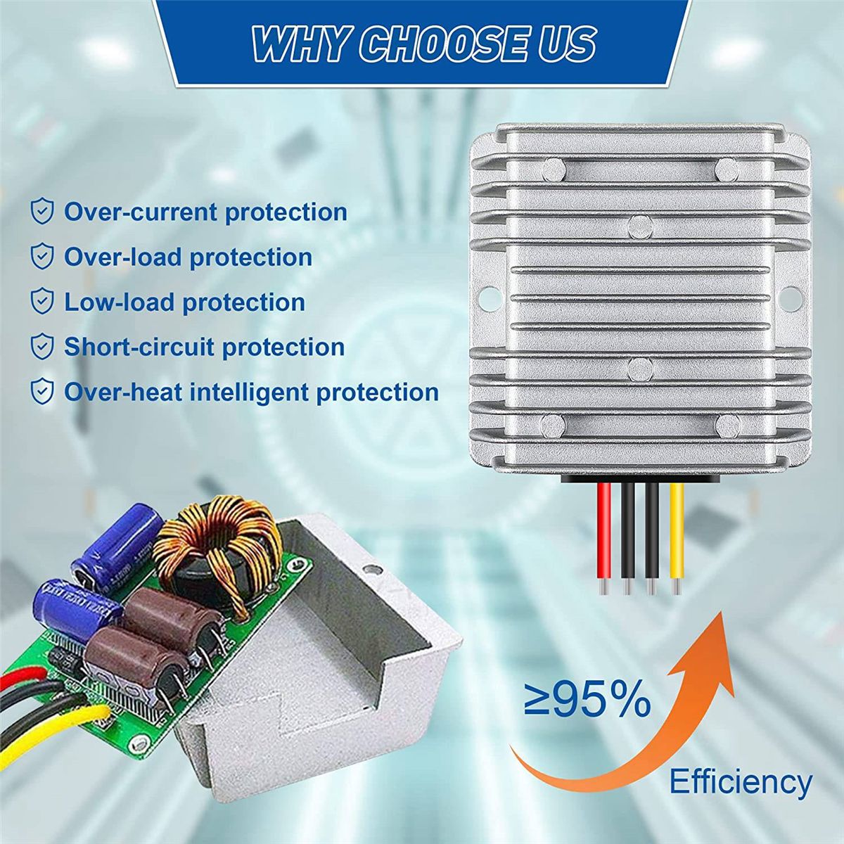 Smart chip is this 48v to 12v converter provides comprehensive protection against overvoltageundervoltage input overcurrent overload overheating and short circuit