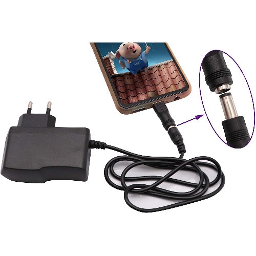 You can plug in the DC 5.5/2.1mm power plug into this adapter.