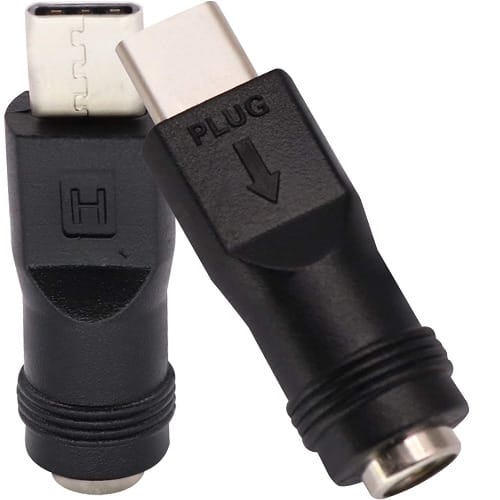 This adapter has a 5.5/2.5mm female Jack DC connector at the input and a USB-C connector at the output. It will allow you to power modules with USB-C connectivity using a power adapter that has a 5.5/2.5mm male Jack DC connector.