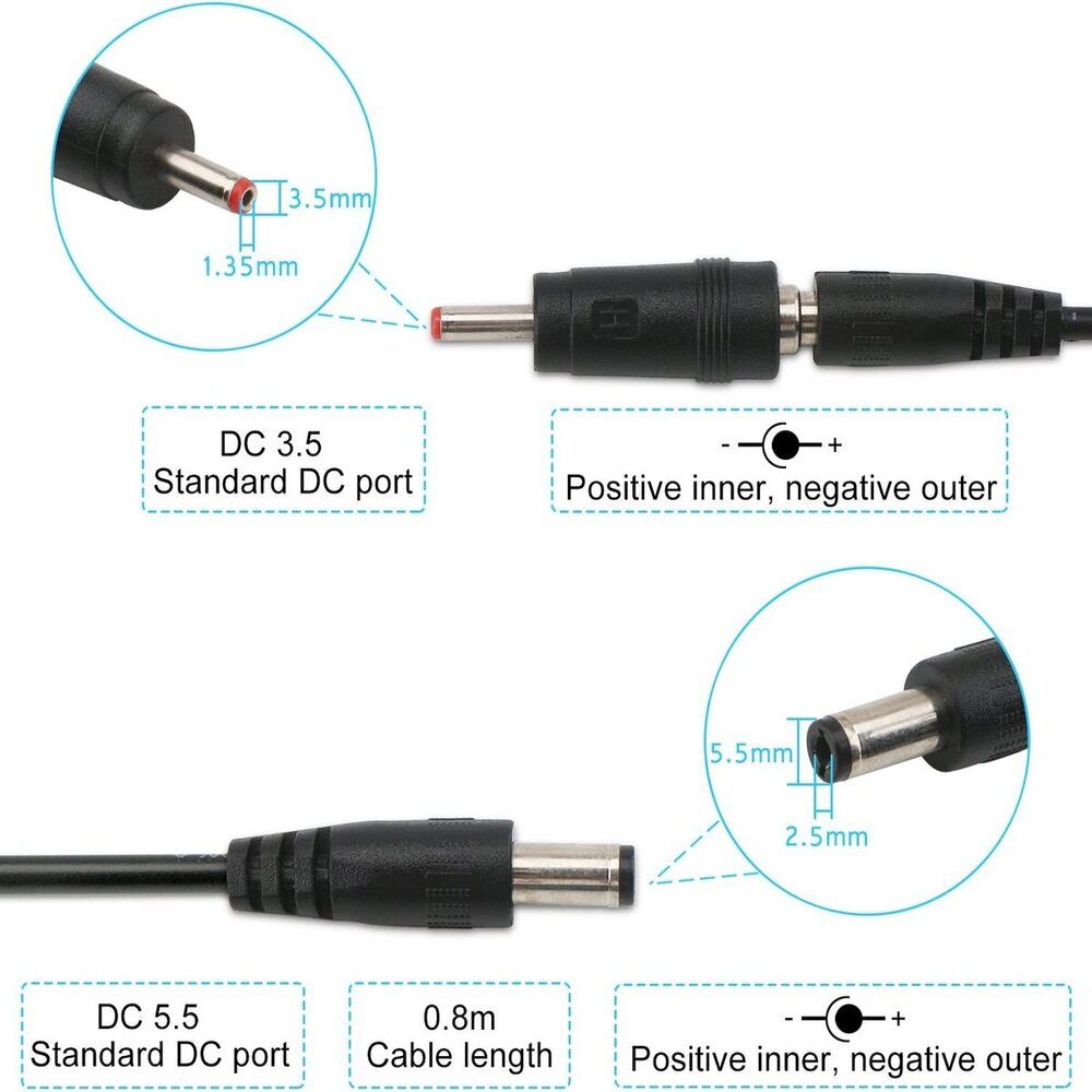 Two different connectors (DC 3.5 and DC 5.5) to choose from as compatible with your device