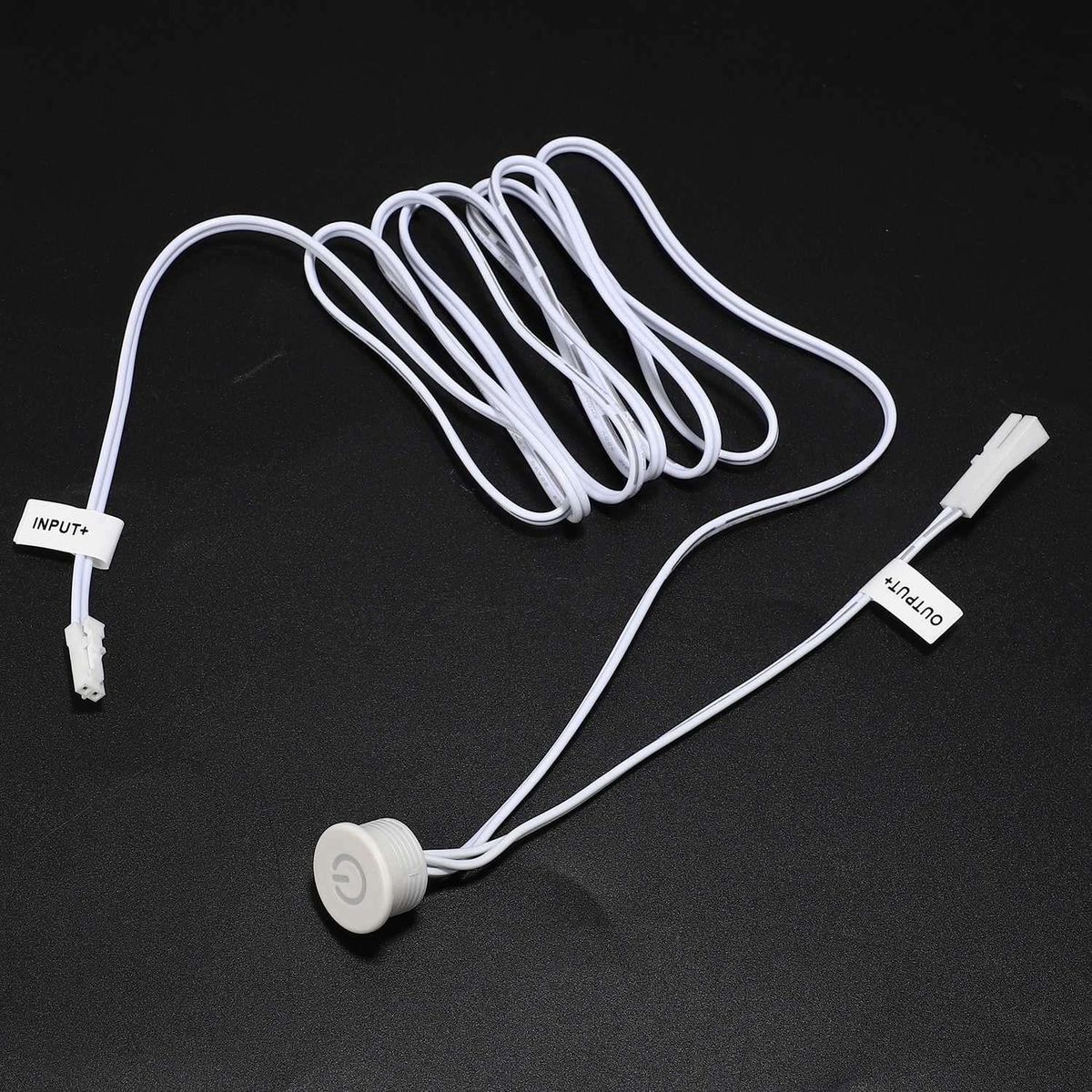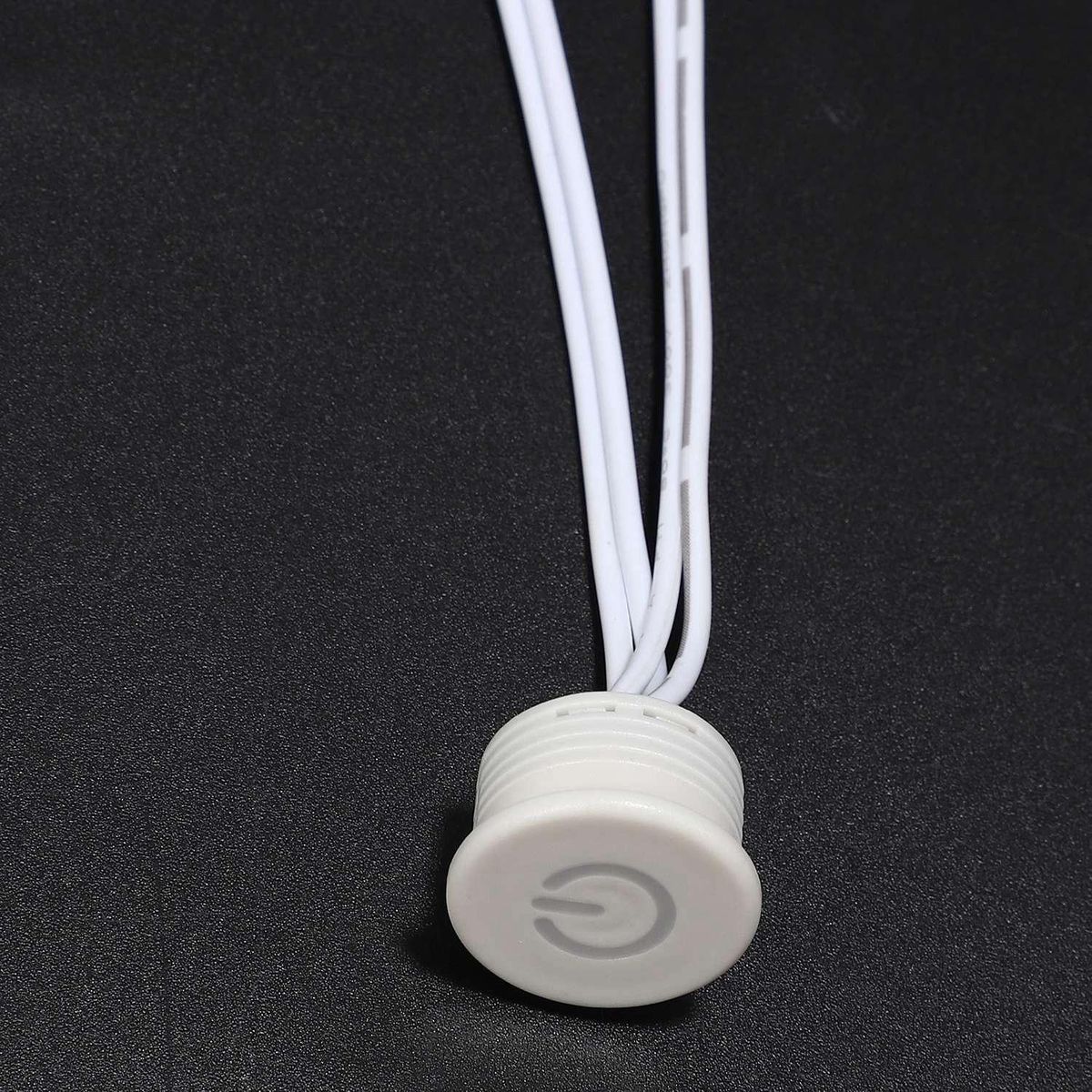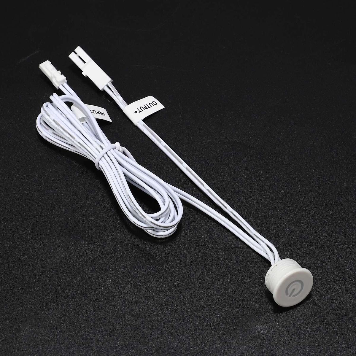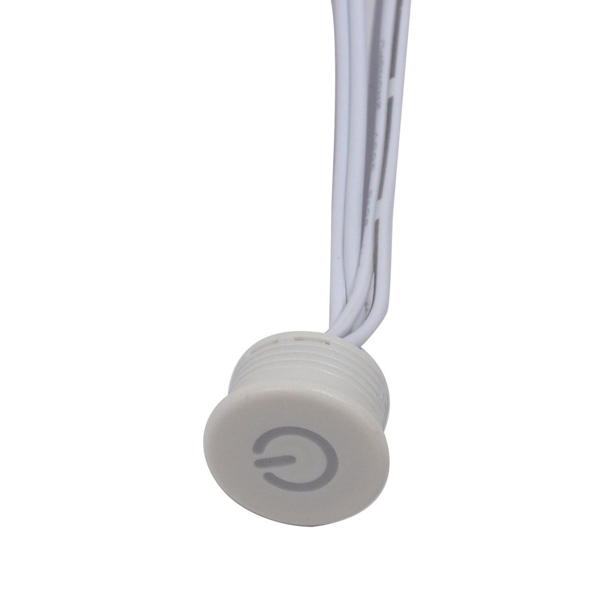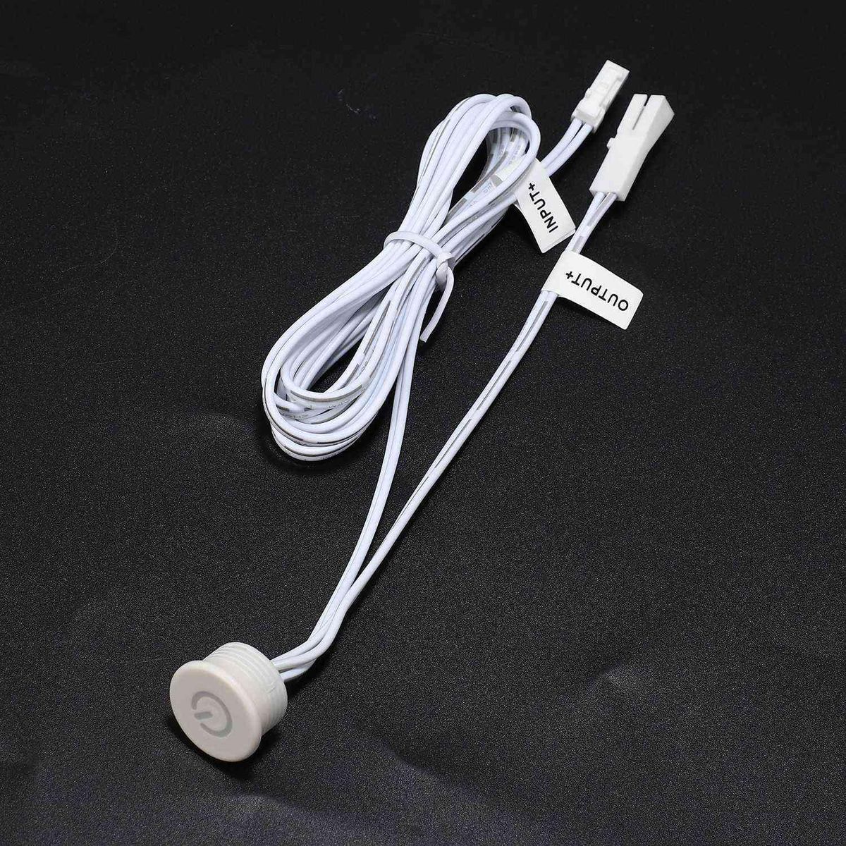 Working voltage: 5V Easy to install, stable, Application: LED light, , cabinet kitchen light, kinds of electric applications Material: ABS Color: White Output Current: 3A Quiescent Current: Less than 3mA Service time : 80000h Working Temperature: -20-50degree Hole Diameter: 17mm Cable Length: 0.5mOutput) 1.5mInput) Size:19*11mm Package includes: 1 x Press Sensor Control Switch