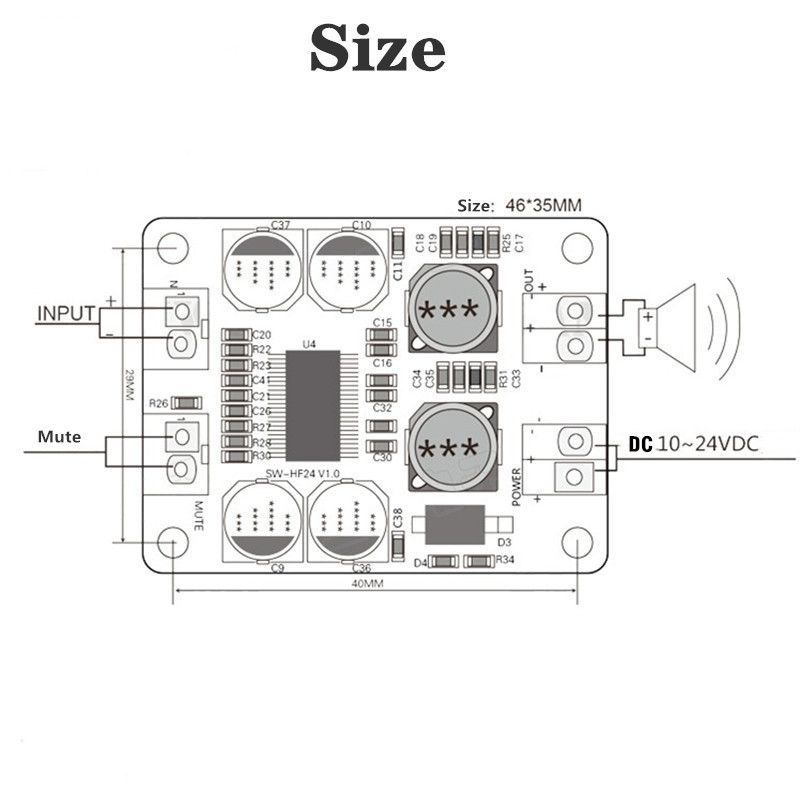 Dc 8-24V Digital power amplifier board Mono 1* 60W digital power amplifier board for speaker modification