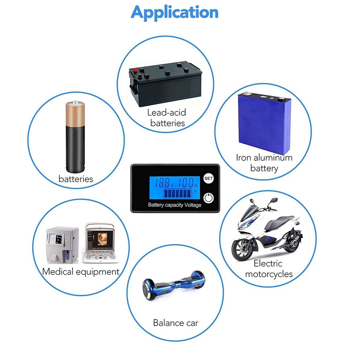 LCD display: The battery monitor adopts LCD screen, can long-term display the battery capacity, voltage, temperature, convenient to use in a variety of lighting conditions.