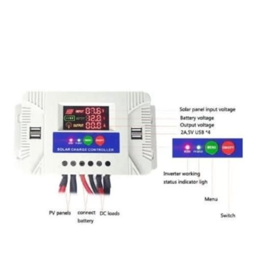 Solar Charge Controller 30A, 12V/24V Solar Panel Battery Controller PWM Solar Controller Intelligent Regulator Adjustable LCD Display Description: Type:Solar Power Meters Material:ABS+component Power:12V/24V Display Type:LCD Display Interface:Dual USB Package List: One 30A Solar Panel Battery Charge Controller PWM and manual