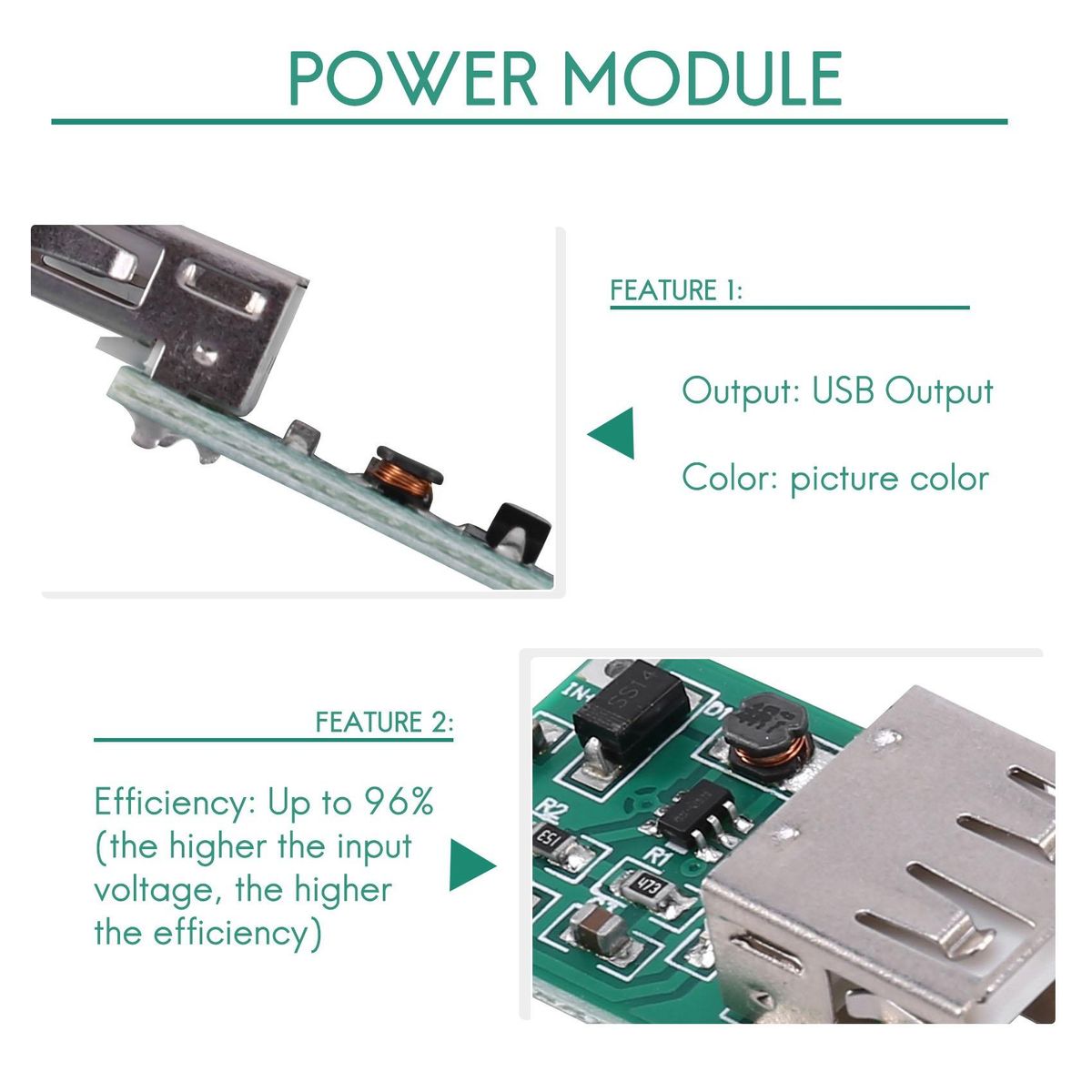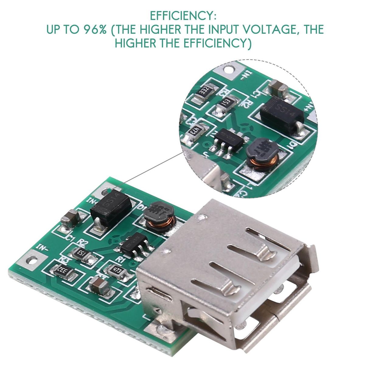 Efficiency: Up to 96% (the higher the input voltage, the higher the efficiency)