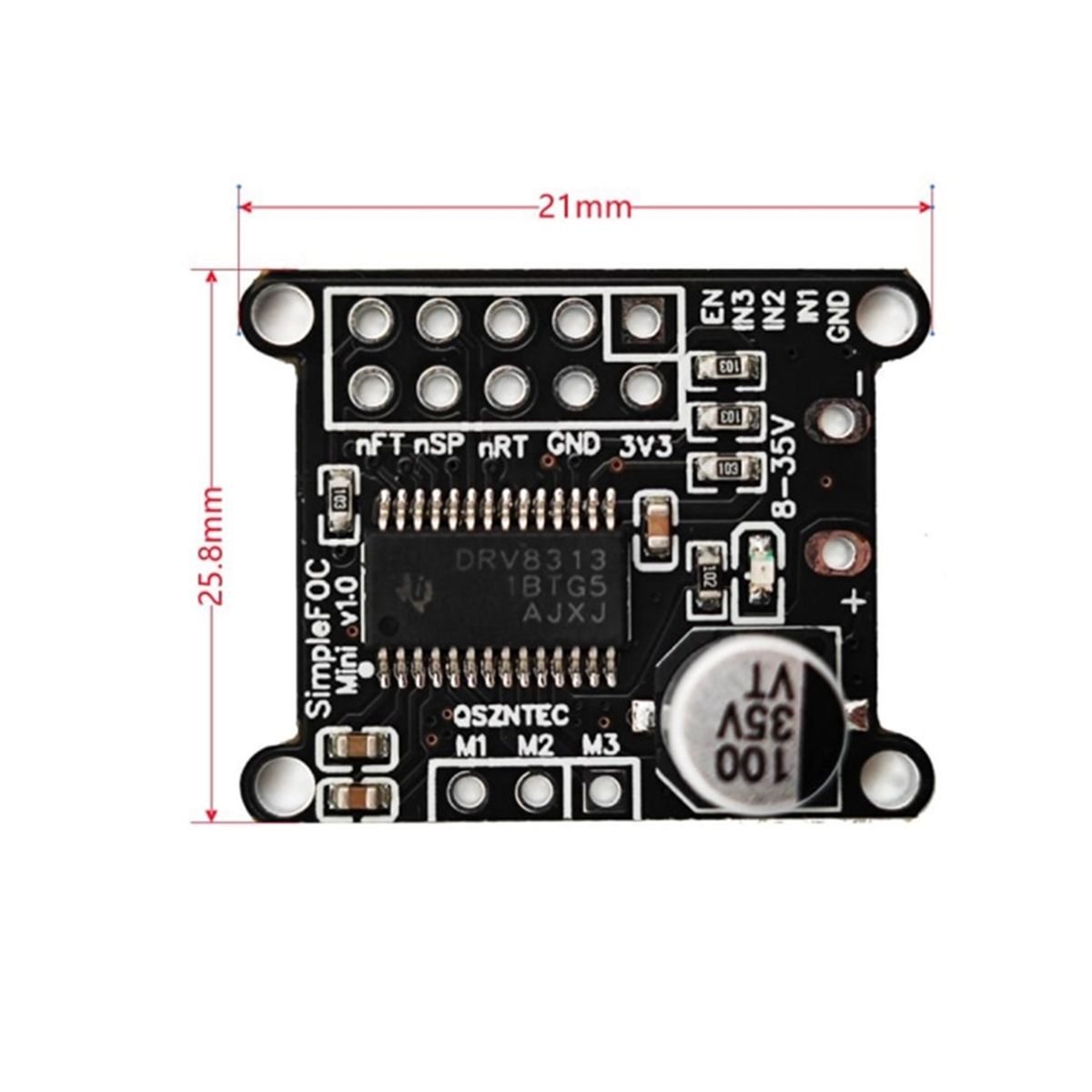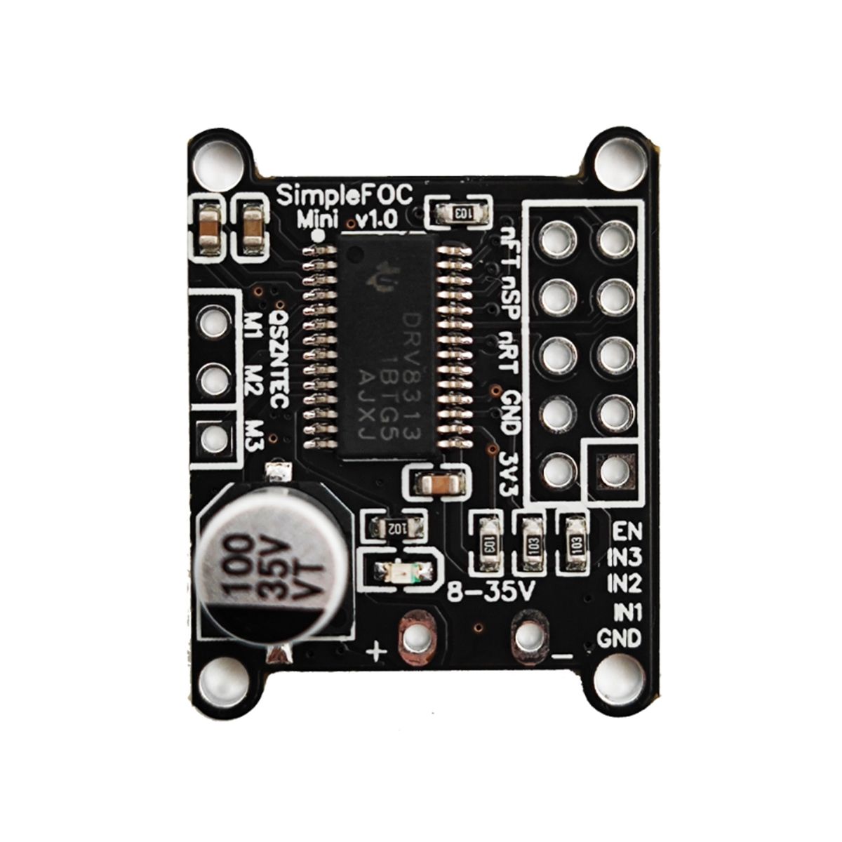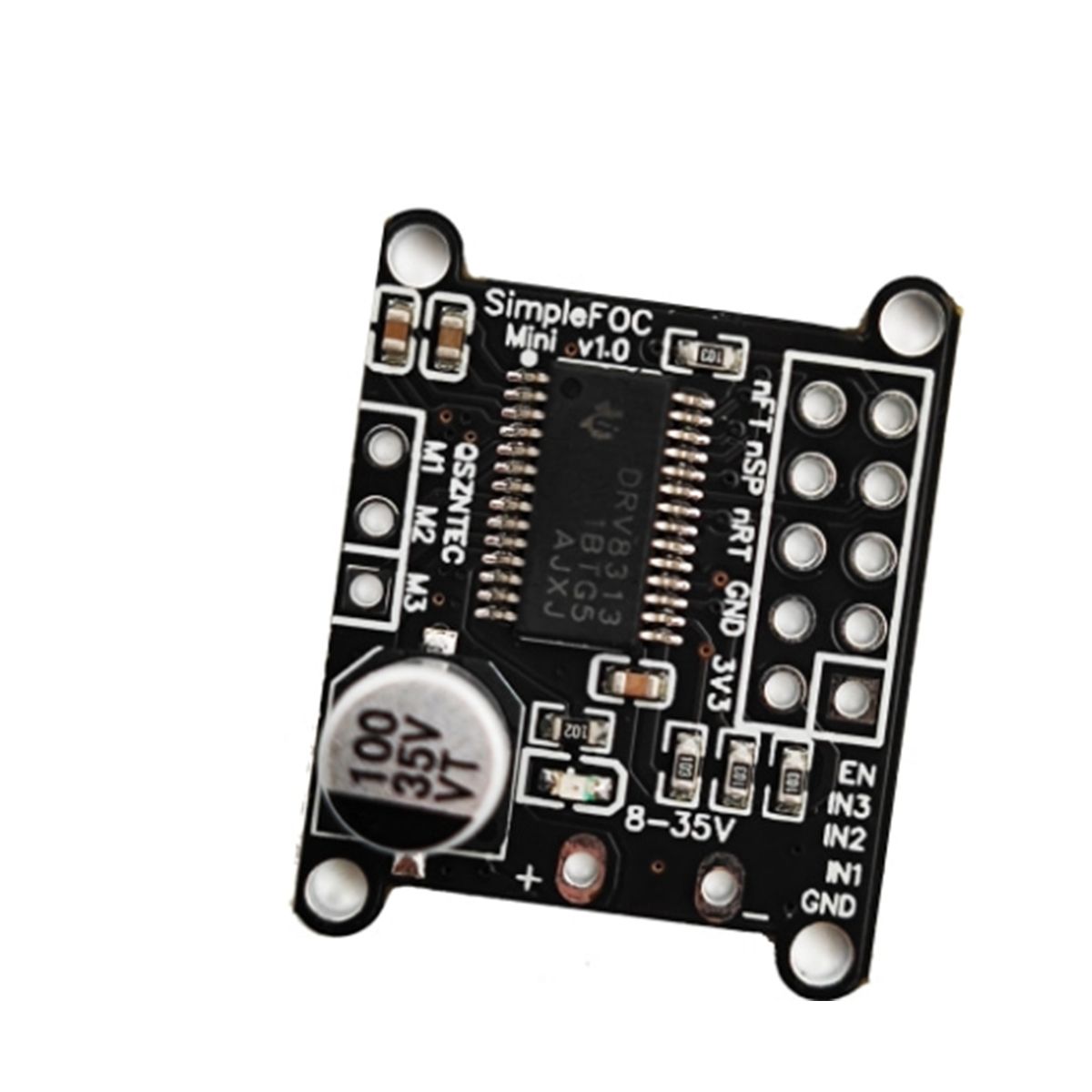 The SimpleFOCMini DC brushless motor driver board uses the DRV8313 chip