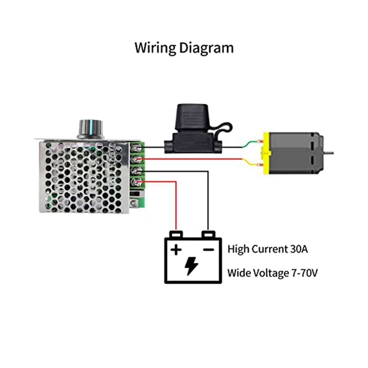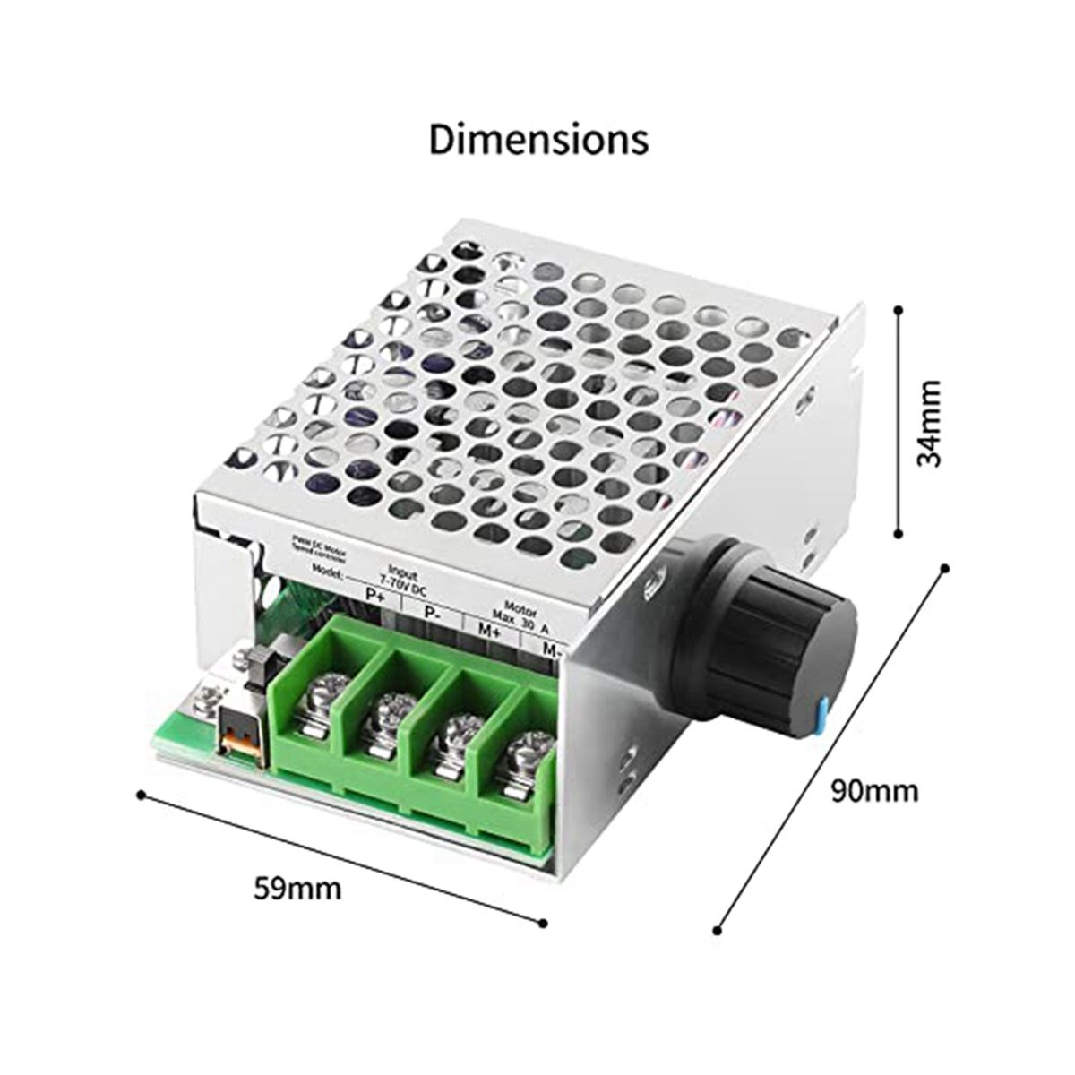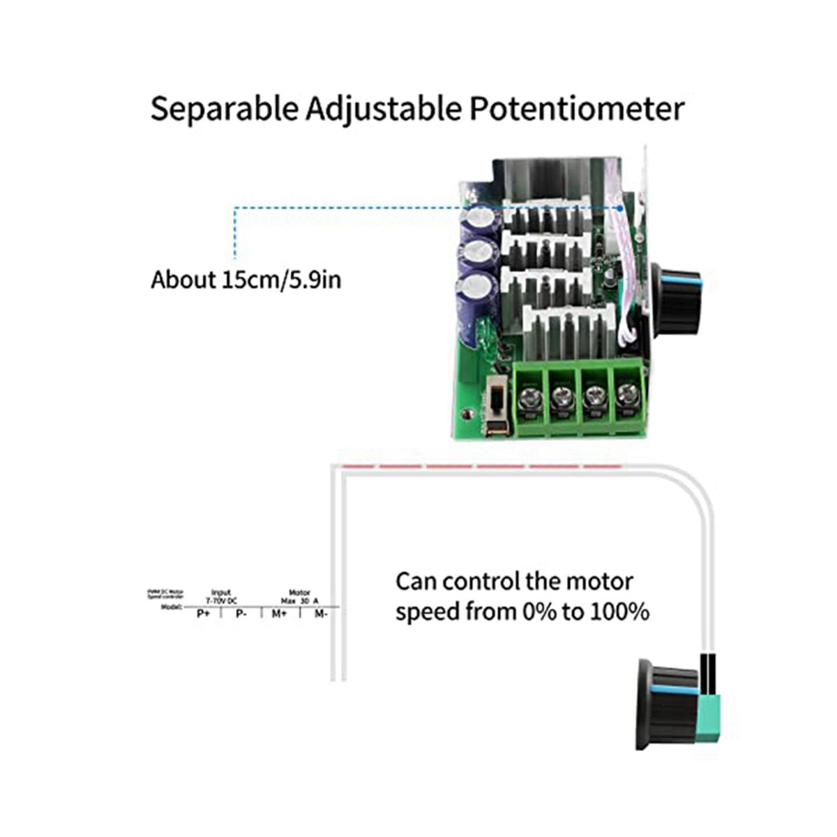 7-70V 30A PWM DC Motor Speed Controller can be directly connected to the motor and adjust the potentiometer to adjust the motor's speed