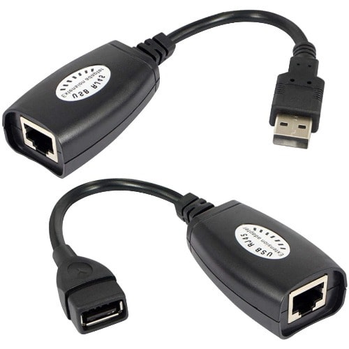 Allows you to connect a USB device to your computer at a distance of up to 150 feet, with the help of a Cat5/Cat5e/Cat6 patch cable (not included)Ideal solution for connecting USB device over a long distance. Eg. Webcam, Keyboard, Mouse, Printer, Security Camera, etc.Simple and Cost EffectiveNo software required, plug n playPackage Included:1 x Connector with USB Type A Male, RJ45 Female1 x Connector with USB Type A Female, RJ45 Female