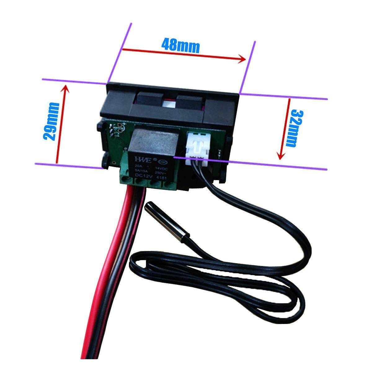1.Model: xd-2048 2.Temperature Measurement Range: -50 ℃ ~ 110 ℃ Resolution: 0.1 ℃ when -9.9-99.9 temperature ranges 1 ℃ 3.Accuracy: ± 0.1 ℃ 4.Control Accuracy: 0.1 ℃ 5.Backlash Accuracy: 0.1 ℃ 6.Refresh Rate: 0.5S 7.High-temperature protection: 0-110 ℃ 8.Input Voltage: DC12V 9.Measuring Input: NTC (10K0.5%) Waterproof sensor 10.Input: 20A relay all the way 11.Environmental Requirements: -10 ℃ --60 ℃ Humidity 20% - 85% 12.Size: 48mm x 29mm x 32mm 13.Hole Size: 46x26.5mm 14. consumption: Static current ≤35MA pull current: ≤65MA