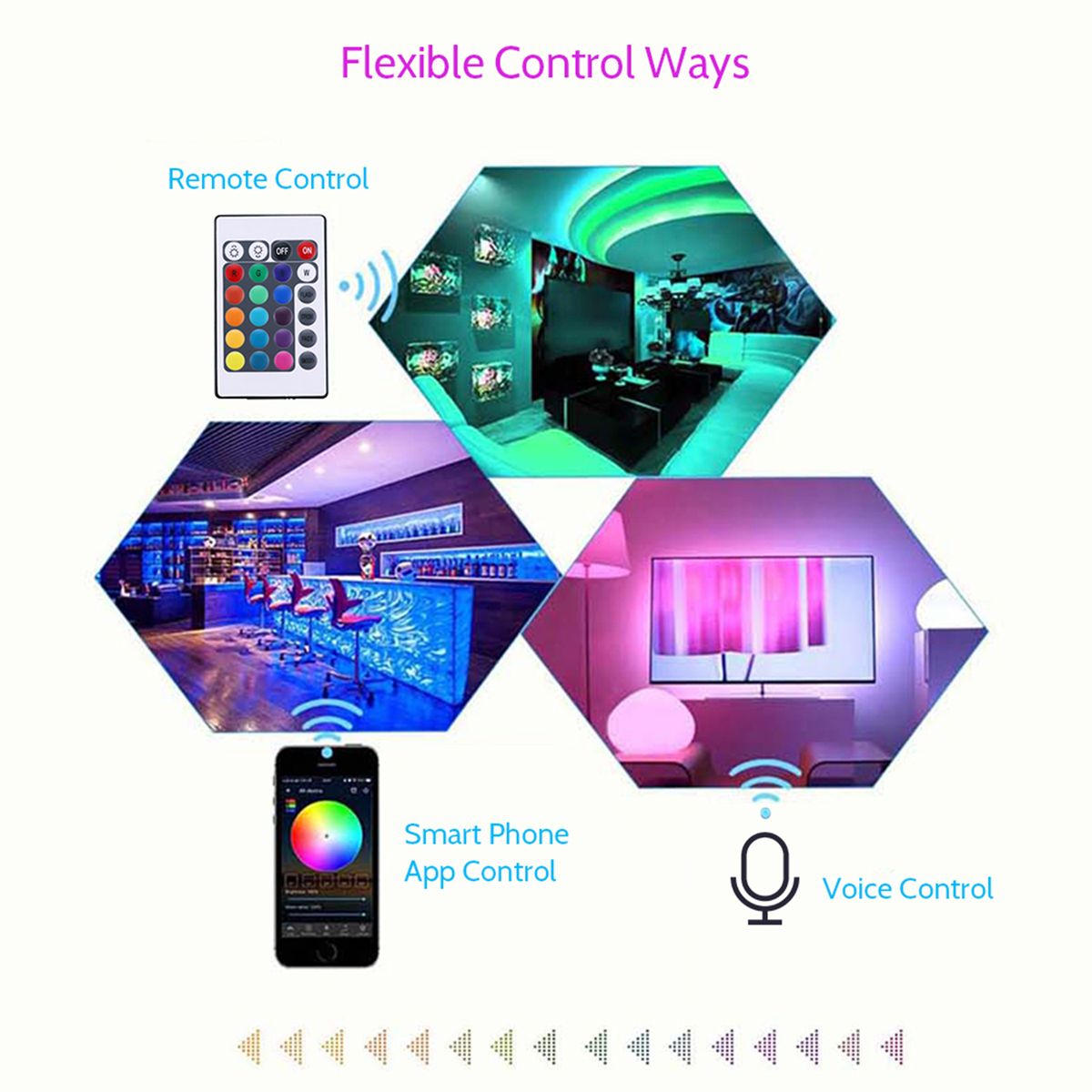 MULTIPLE COLORS AND PATTERNS: 16 million colors and built-in 20 dynamic modes for your option and you can use the camera mode for selecting your favourite colors after aiming at the color you like by phone camera , light band can be controlled by music rhythm after selecting microphone mode, which can bring dynamic and gorgeous effect for your party and festival.