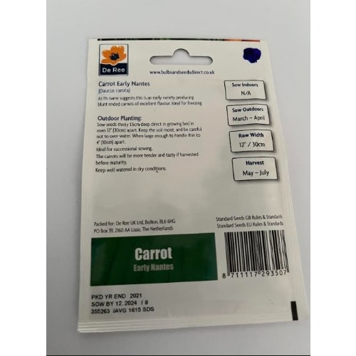 Buy De ree Carrot-early Nantes - 1615 Seeds in Nigeria