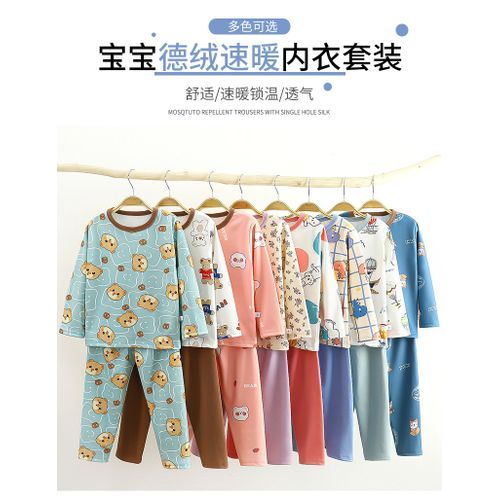 De Rong Underwear Set Brushed Warm Round Neck Middle aged Boys and Girls |