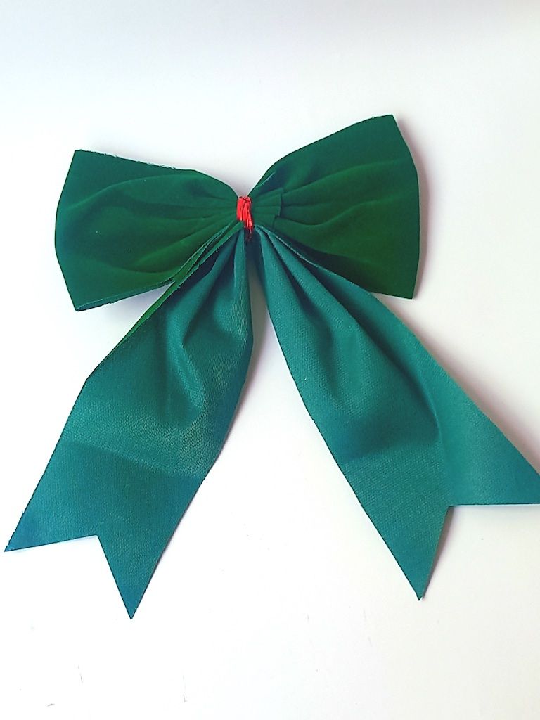 suede Christmas bow measures about 6.5inches x 7 inches.Easy to use with a twist tie on the back making it very easy for you to hang on target places to highlight your christmas decorations and create a happy atmosphere.It is a versatile Christmas