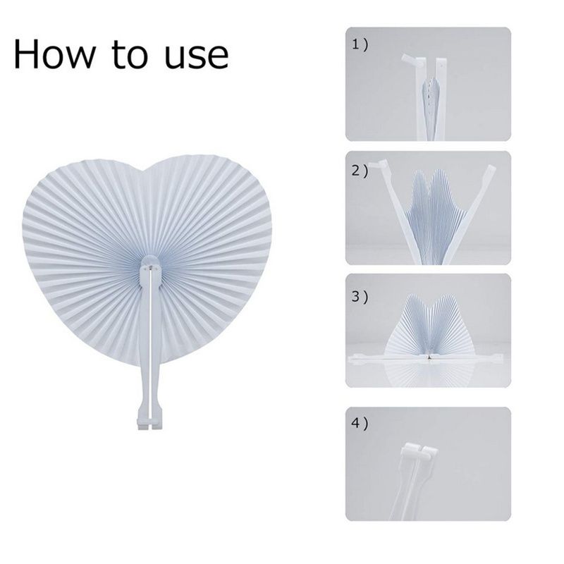 Buy Decoration(White) Wedding Wedding Fan Birthday 5 Paper Pocket Folding Pcs Handheld Heart Shape Party For Guest Fans in Nigeria