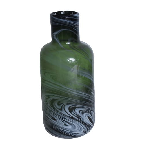 The belle palacio collection decorative vase is constructed of durable iron covered with elegant kit-shaped; marble-look black glass mosaic alternating with silver mirrored glass mosaic tiles. It is 14 inches tall and 4 inches in diameter. It has a unique eye-pleasing shape with flowing curves. The tiles feature a kite or shield shape accented with rows of square mirrored mosaic. The top and bottom of the vase are accented in square-shaped silver mirrored mosaic tiles.This vase will compliment decorating styles such as bohemian modern, contemporary and elegant as well as other styles with similar color schemes. It can be used as a floor vase or placed on bookshelves, a parsons table in the entryway or hallway, on the dresser in the bedroom and on occasional tables in the living room. It can used to display dried flowers, leaves or decorative feathers and will also be beautiful on its own as a glistening accent piece.The use of this vase will add a touch of sophistication to office reception areas, lobbies and powder rooms or any area of your home where you would like to add a pop of sparkling color and will provide an elegant decorative accent in niches or nooks. It will be a welcome wedding gift, housewarming gift or a gift for other special occasions. Interior decorators and home stagers, whether home owners or professionals, will appreciate the sparkle.Cleaning instructions: Dust with a dry cloth. Use non-abrasive cleaners only if necessary and only if sprayed on a cloth, not directly onto the vase.This handcrafted vase made of iron and shimmering glass mosaic tiles is exclusive to Decor Shore. It is available for a limited time and in limited quantities in order that we may bring you new and fresh items on a regular basis.