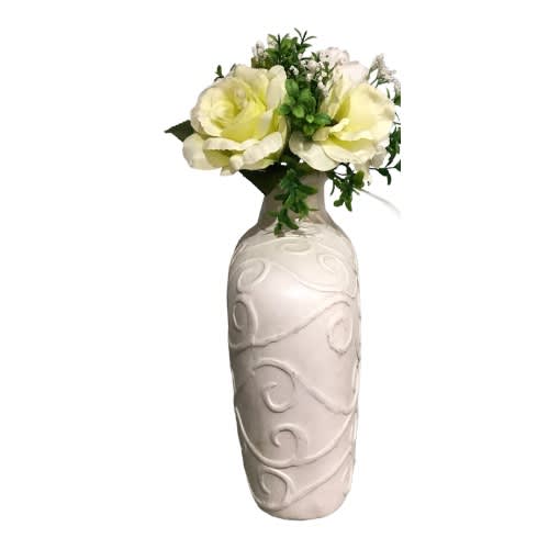 Features an earthenware design that is ideal for displaying beautiful floral arrangements. Vase is handmade, resulting in unique details.