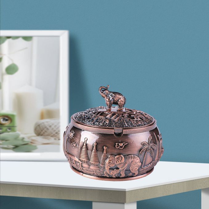 Windproof Ashtray;Vintage Decorative Windproof Ashtray with Lid;Portable Ashtray Indoor Outdoor Hand Carved;Decorative Ashtray Gift Ornament for Men Women;Outdoors Indoors Ash Tray Smoking Ash Tray;Desktop Home Office Decoration Ash Holder