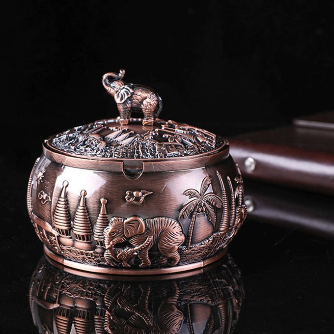 Classic retro, filigree & enamel hand stamped perfect 3D pattern, fine texture facet, smooth hand, good gloss; , windproof, deep enough for keeping ash inside.