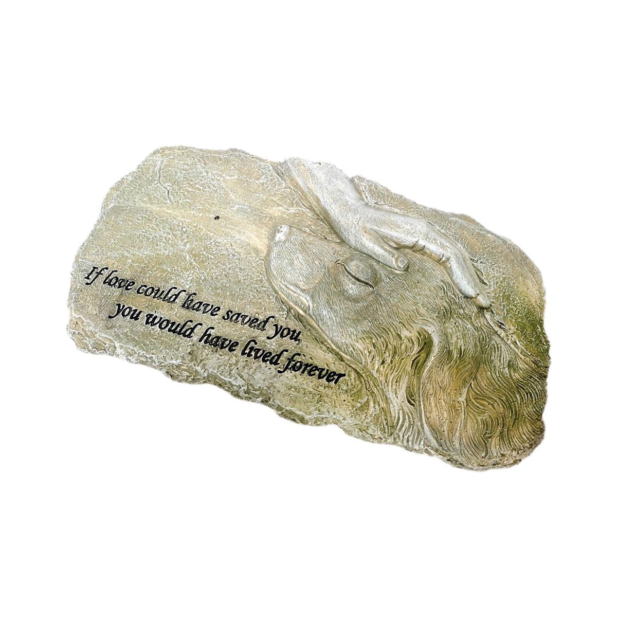 Garden stone for loved pet has the lifelike look and feel of a real stone.This memorial stone is designed to be outside in the backyard lawn or garden.