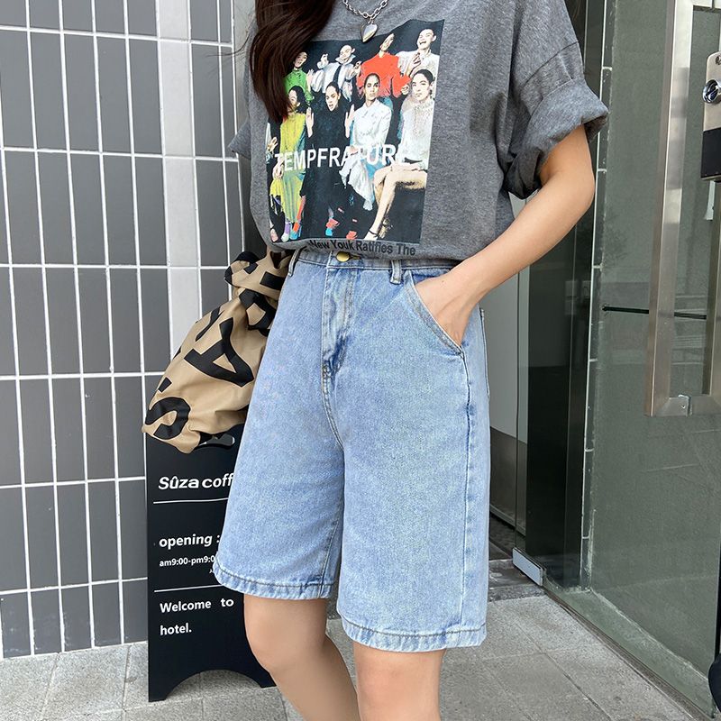 1X Denim Shorts Women 2021 Elegant Shorts Female High Waist Wide Leg Cotton Summer Fahion Korean Style Casual Loose Ladies Clothes