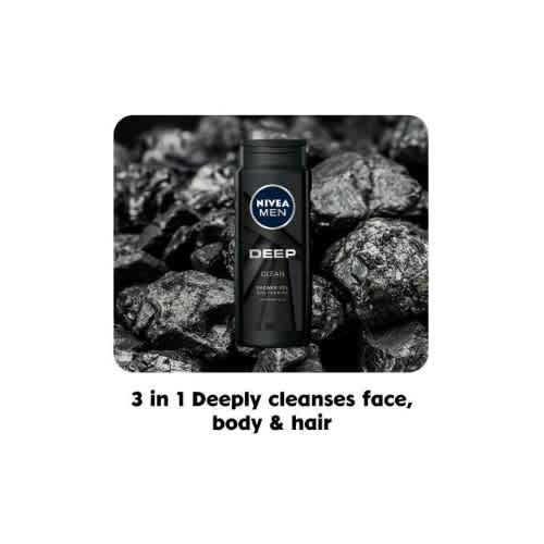 NIVEA Deep Shower Gel is developed for men who want to feel deeply clean and refreshed. This innovative formula with naturally derived microfine clay absorbs impurities and cleanses your skin deeply, leaving a fresh skin feeling. The effective, yet mild gel with its dark wood fragrance transforms into a white caring foam, leaving your skin and hair feeling deeply refreshed and cared for.