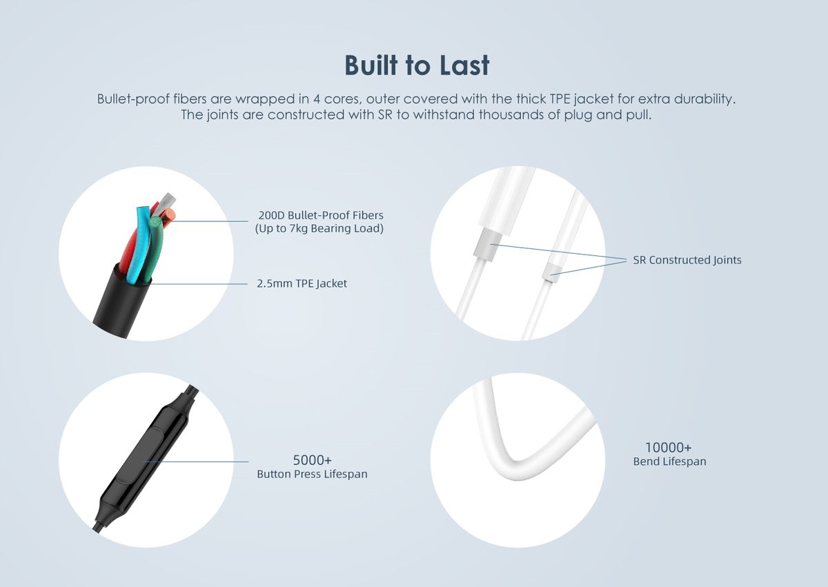 No More TangleThe wire made of TPE material has high flexibility and twist resistance that's easy to manage