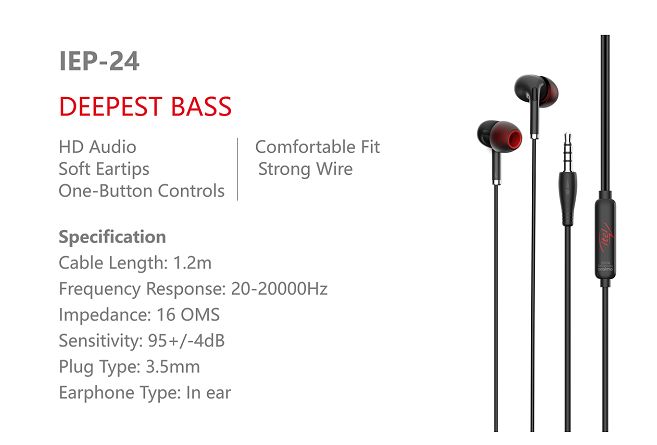 IEP-24- Deepest Bass Wired EarphonesIEP 24 Itel Earphones are the finest & amazing Itel Earphones manufactured by Itel. The earphones of Itel are classic & durable.