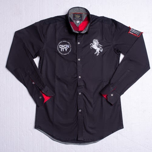 Dekk Up In This Black Casual, Pro-Patriot Longsleeve Shirt. This Dekk shirt is a practical statement about national pride.It features an embroidered detail White Horse that symbolises DIGNITY.The shirt flatters your true Dignified physique. Crafted from luxe combed cotton fabric without stretch, this high-performance shirt speakes volumes if a Dignified Heritage.Team with chinos, jeans and ethnic trousers.