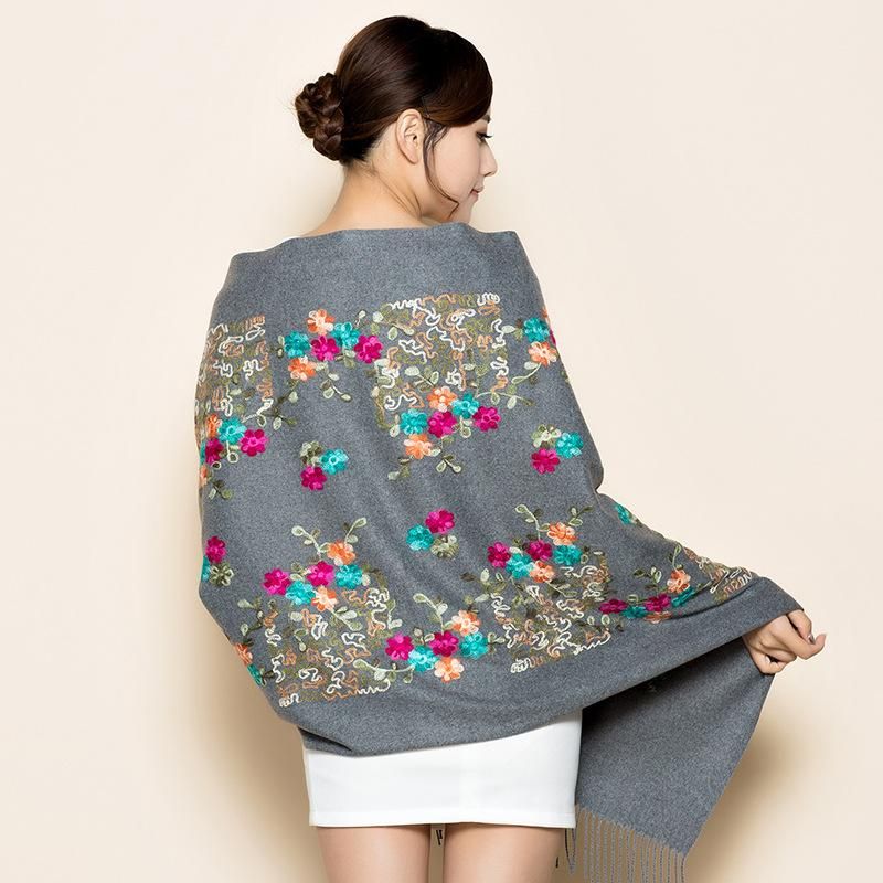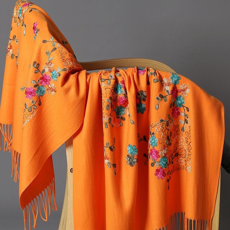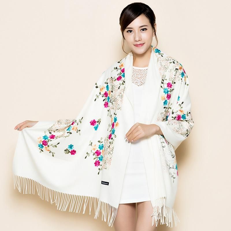 Delicate embroidery flowers winter scarf cashmere pashmina for women scarves fashion tassel long sjaal echarpe foulard femme