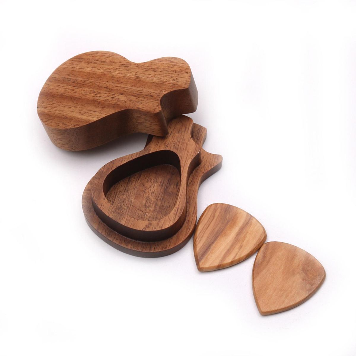 Buy Delicate Wooden Guitar Pick Set Plectrum Storage Holder Case Box with 2pcs Guitar Picks Wood in Nigeria