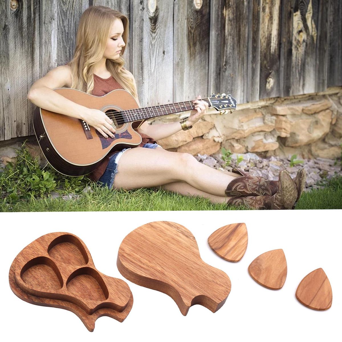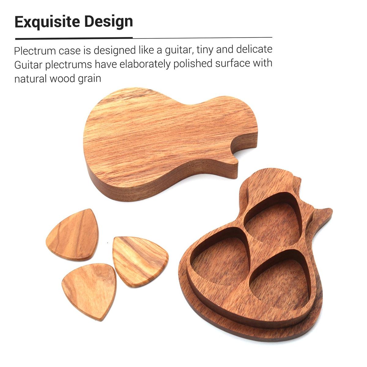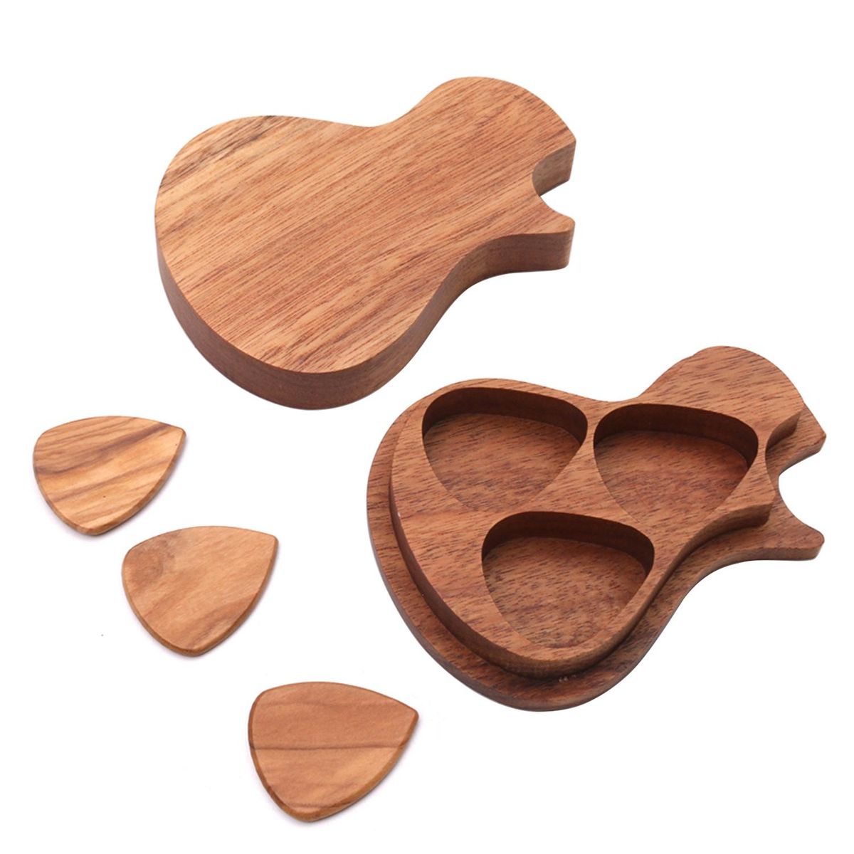 Buy Delicate Wooden Guitar Pick Set Plectrum Storage Holder Case Box with 3pcs Guitar Picks Wood Guitar Accessories in Nigeria
