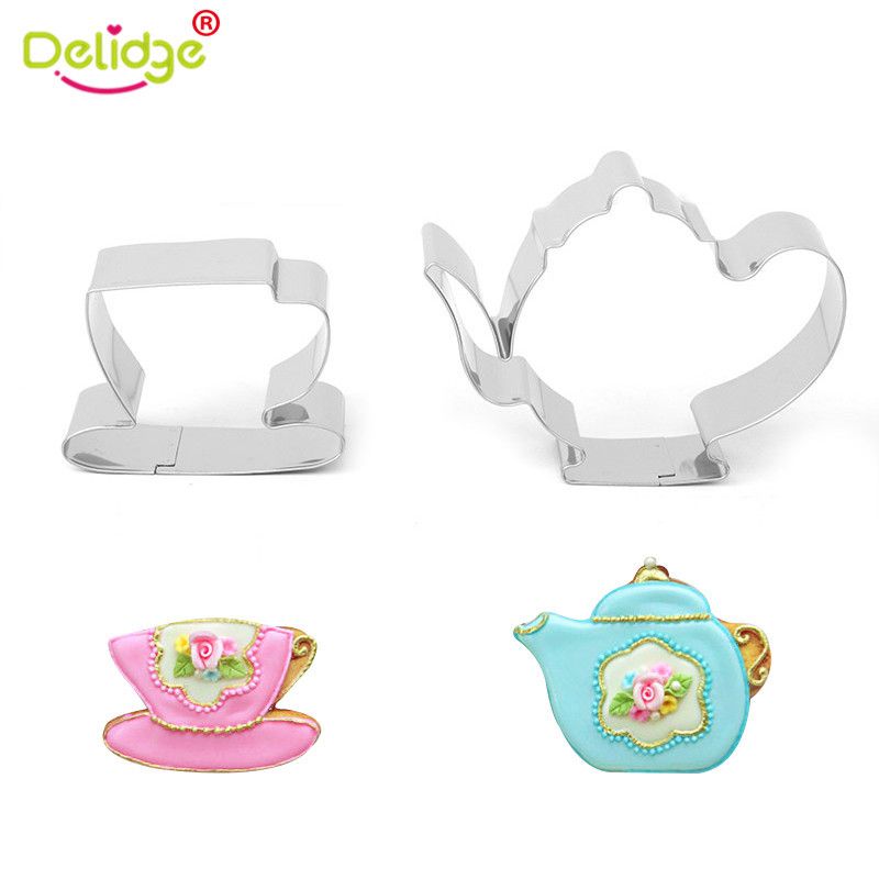 Delidge 2pcs/set Teapot Stainless Steel Cookie Cutter Tea Cup Mold DIY Fondant Pastry Biscuit Cake Baking Decorating Tools