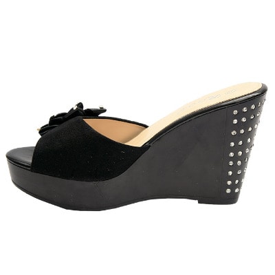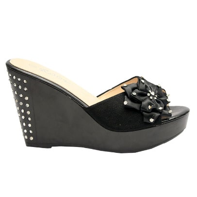 Buy Delta Satin Wedge Slipper With Studded Detail - Black in Nigeria