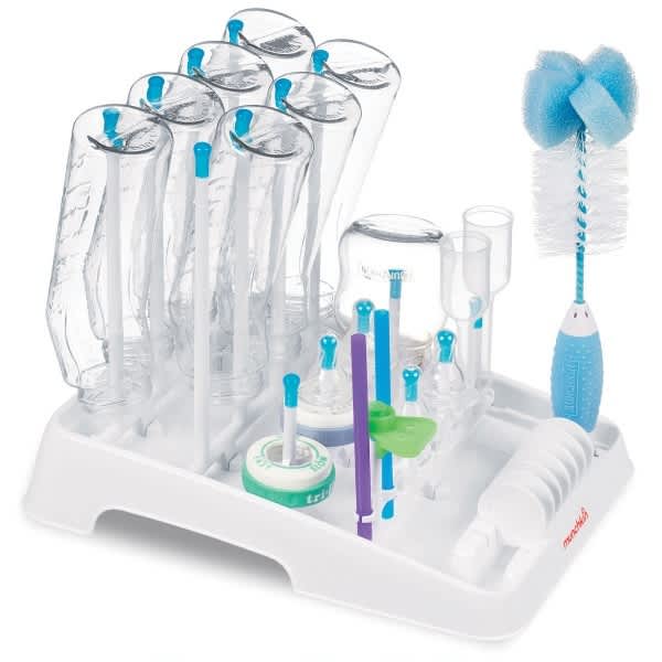 About this itemThe Mommy's Helper Drain-N-Dry Bottle Rack is a sanitary way to dry baby bottles, nipples, rings pacifiers and training cups. The baby bottle dry rack is designed in a way so that it ensures that the excess water is drained out. It has an angled tray that facilitates water drainage. The Drain-N-Dry bottle rack with a pegged tray keeps the bottle from toppling away. It comes along with bottle cleaning brush and an accessory drying rack for your convenience.Mommy's Helper Drain-N-Dry Bottle RackKeeps bottles organized and sanitary while dryingIncludes bottle brush and accessory drying rackPegged tray prevents bottles from topplingSpecificationsMulti Pack Indicator: NoShipping Weight (in pounds): 1.0Product in Inches (L x W x H): 12.0 x 9.0 x 8.5
