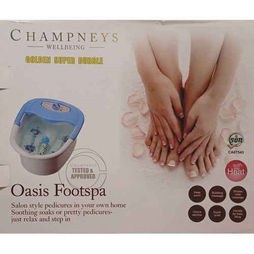 Champneys salon style pedicure in your homesoothing soaksjust relax and step inChampneys Infrared Heat Foot Spa; Compact, lightweight foot spa. Three settings for a varied operation; Infrared heat provides soothing comfort to revive tired feet; pressure rollers provide a soothing massage; Multiple settings for both heat and massage. Benefits : Compact, lightweight foot spa Three settings for a varied operation Infrared heat provides soothing comfort to revive tired feet pressure rollers provide a soothing massage Multiple settings for both heat and massage
