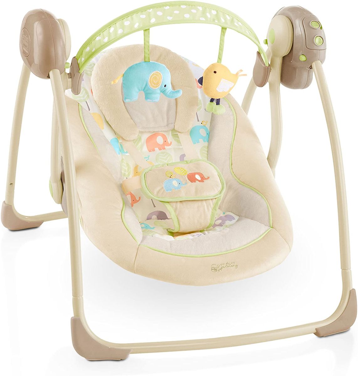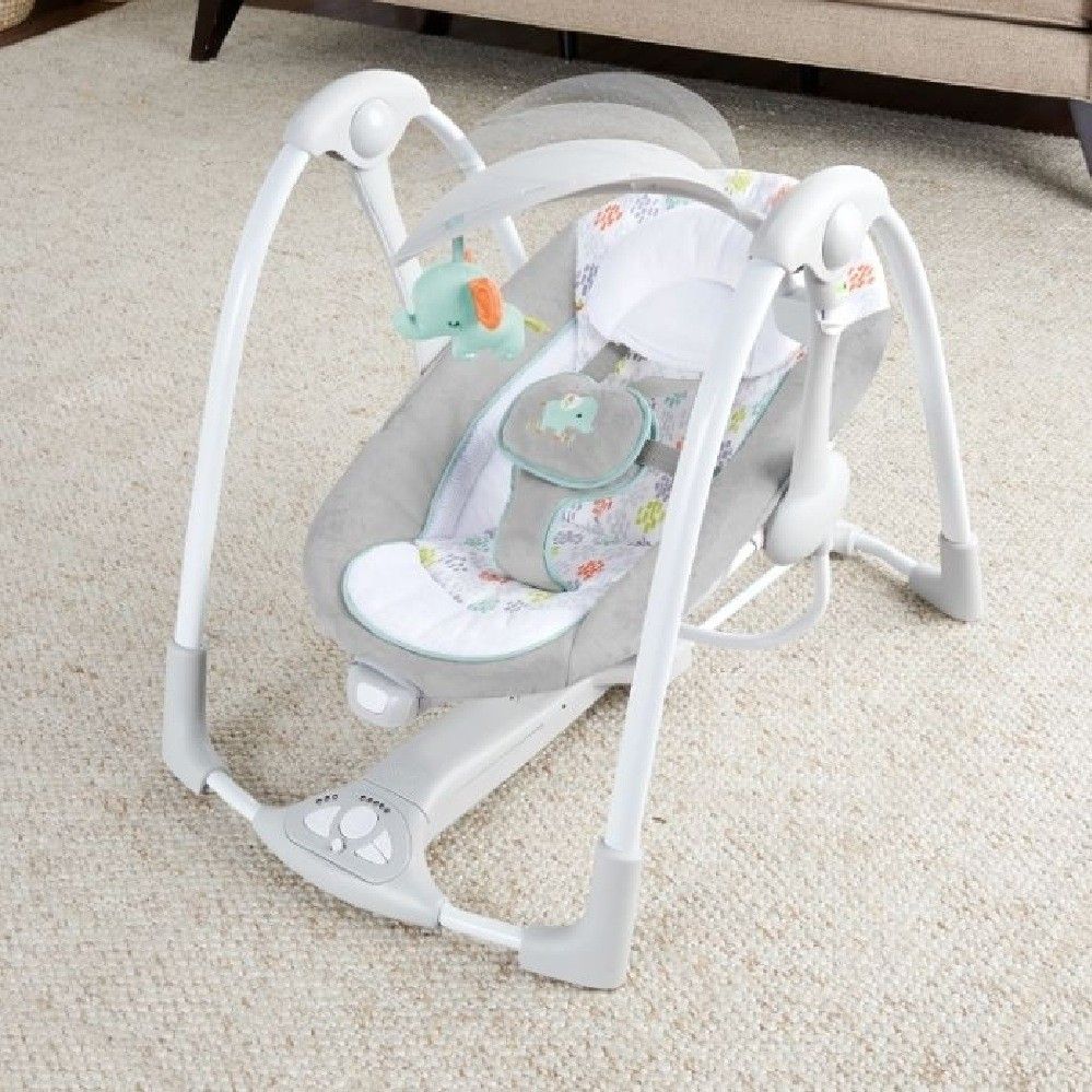 Five-point harness and non-slip feet reassure parents that baby enjoys safe swing time! * Easily folds for storage or travel