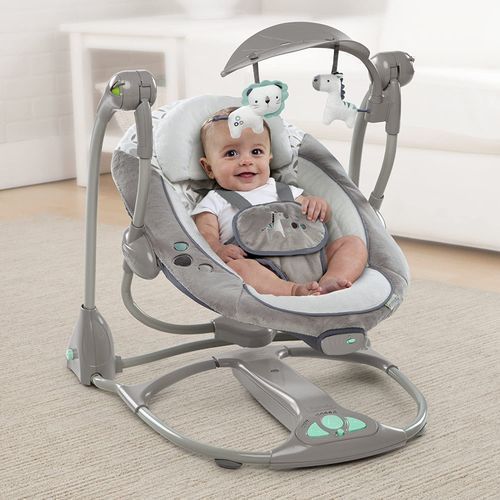 Comfort Recline seat with 2 positions provides extra comfort for baby * The seat can be locked into place for use as a stationary seat. Seven melodies and 3 nature sound entertain baby * Toy bar pivots back for easy access to baby with 2 engaging toys. Easily folds for storage or travel. non-slip feet reassure parents that baby enjoys safe swing time!