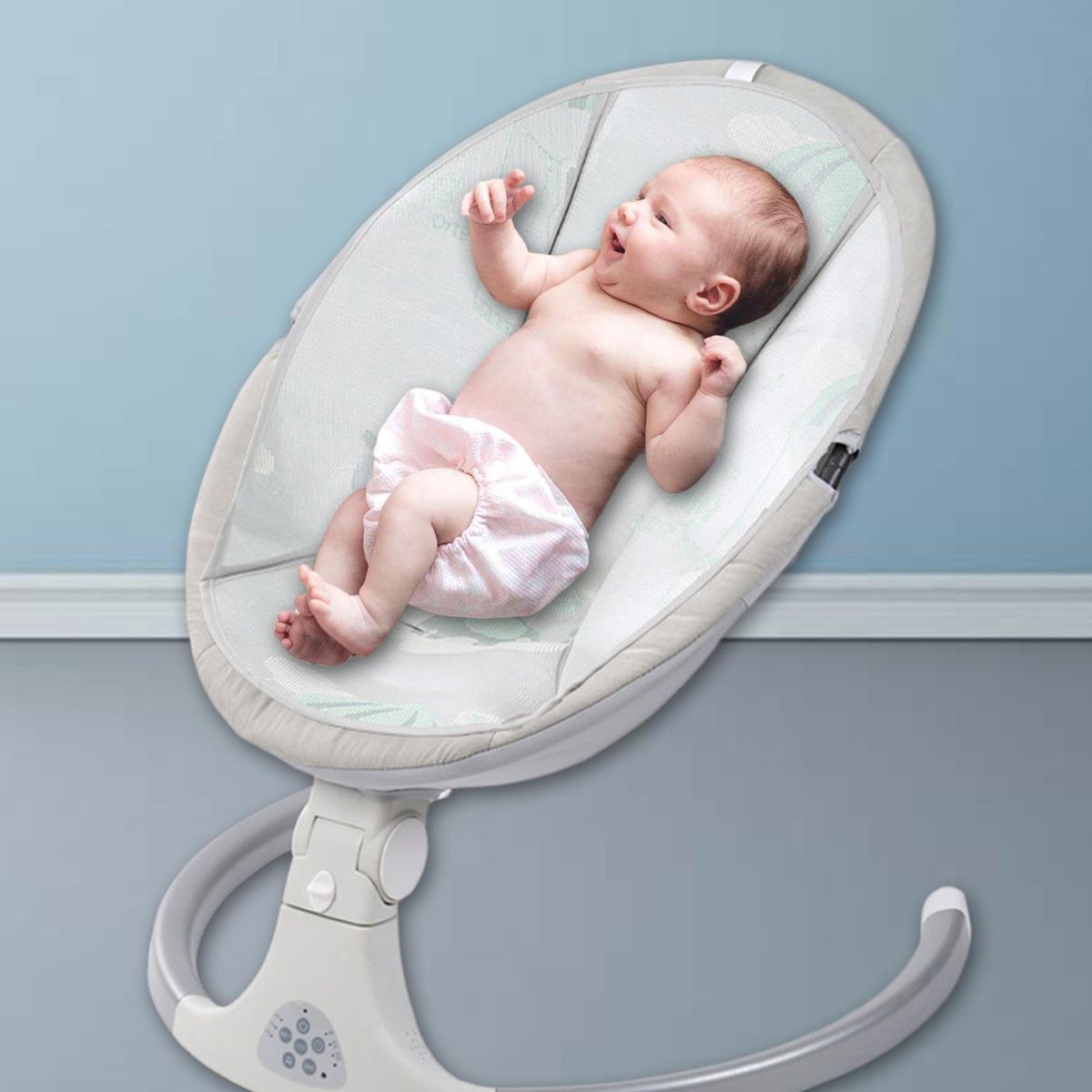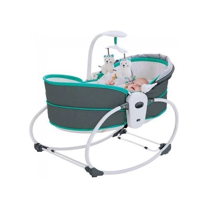 The chaise lounge with the electric drive has 5 speeds for a motion sickness of the child. During the swing you can turn on some nice music. The chair is made of pleasant to the touch fabric, has five-point seat belts, a removable arc with toys. The frame of the deck chair is metal, which can withstand heavy loads.3 levels of backrest position