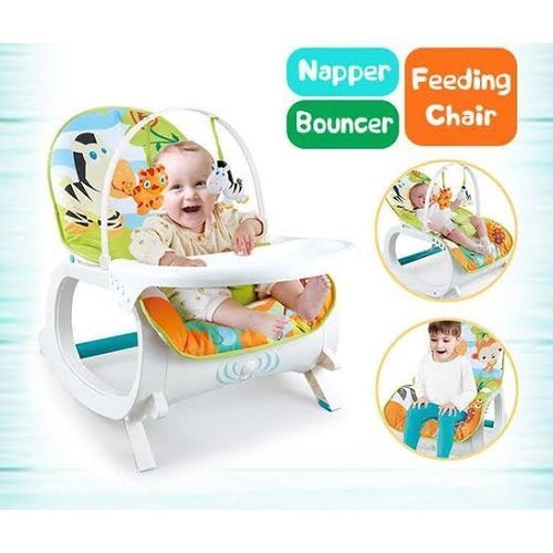 Removable Toy Bar for easy access to baby. 3 Fun Toys on the Toy Bar.Cradling seat for your baby. Adjustable 3-point harness keeps baby secure.Contoured seat for cradling comfort.