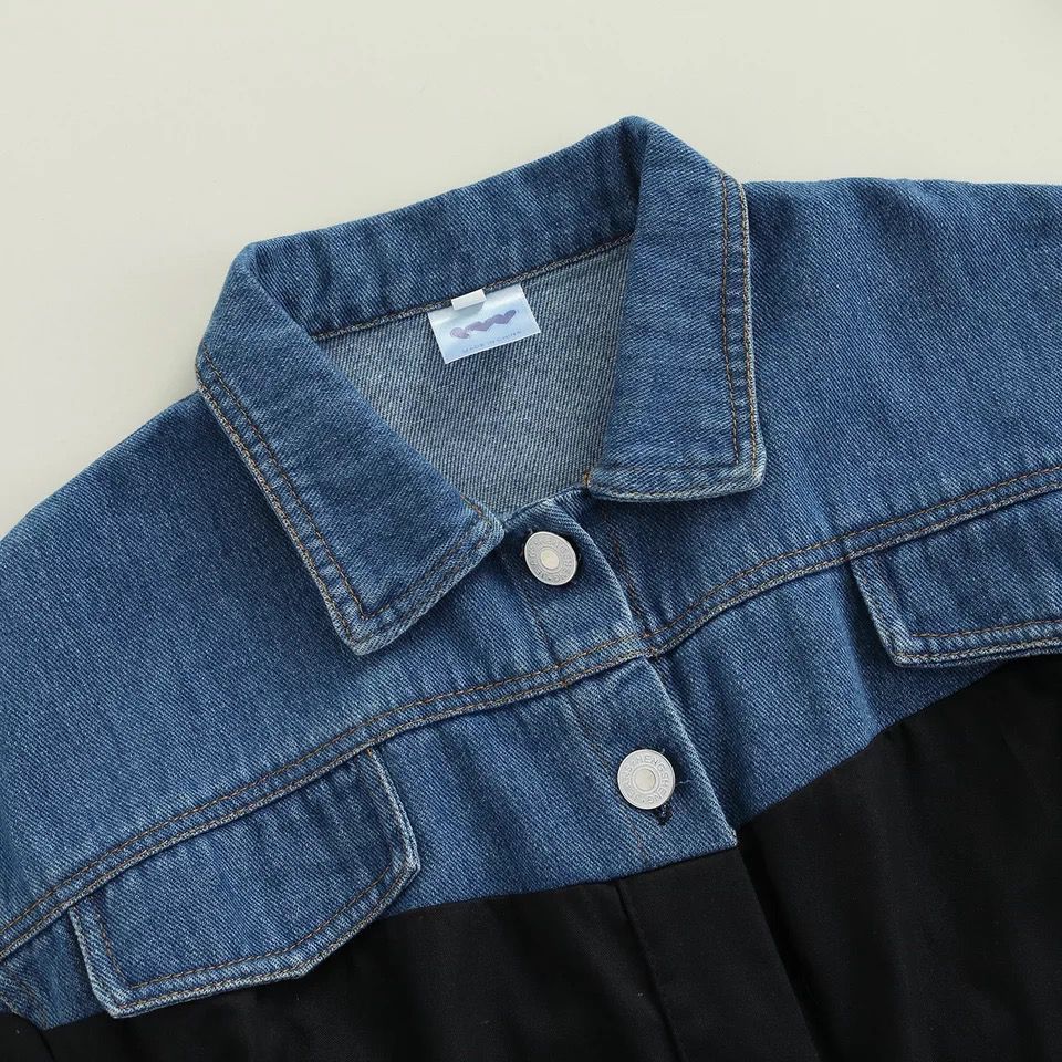 - Denim & Black Patchwork Shirt Dress for Girls