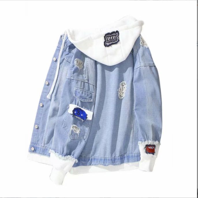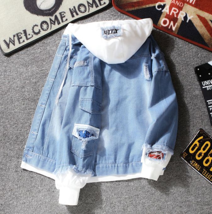 Denim Jacket Korean Casual Jacket Youth Trend Hooded Couple-Light Blue |