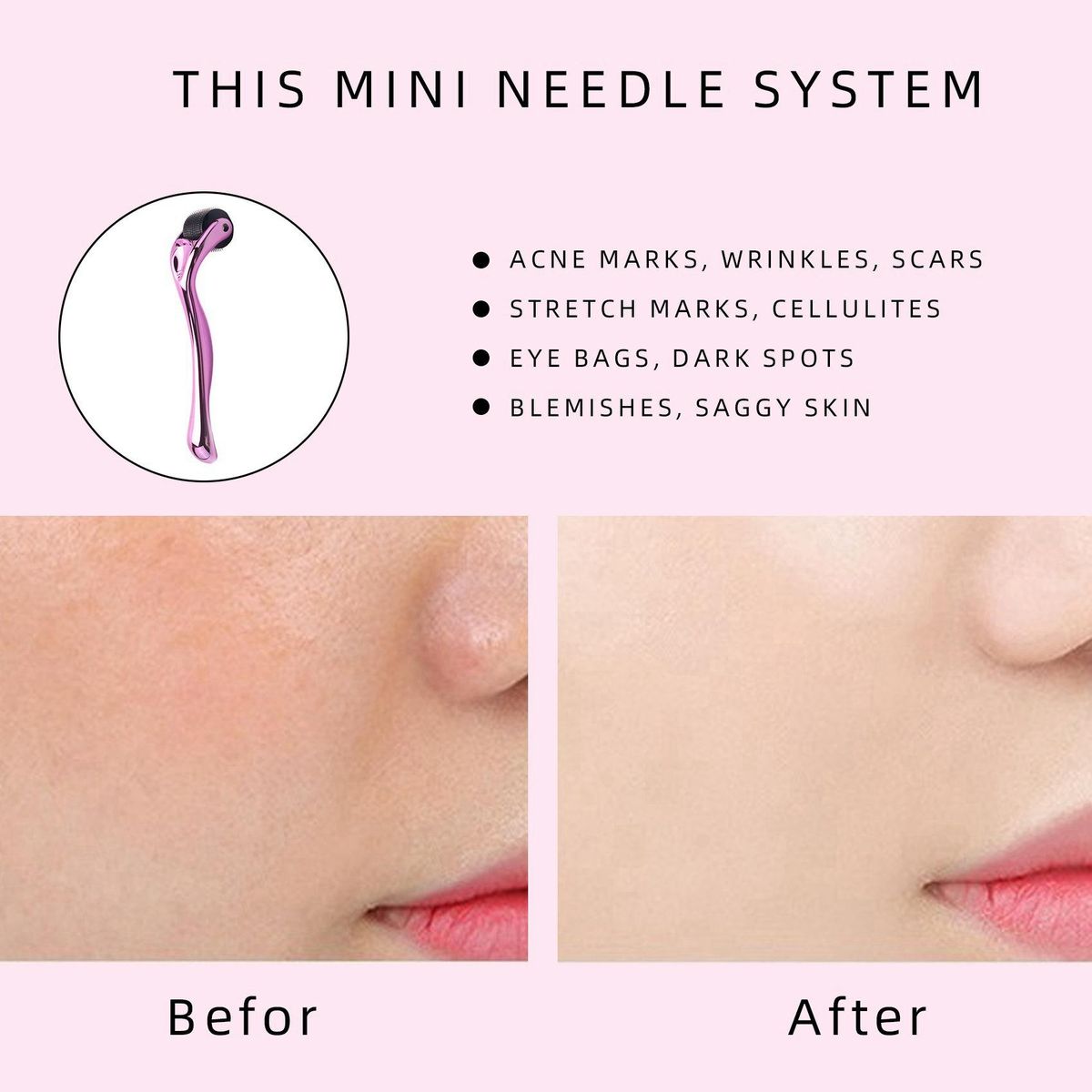 Detailed Information About The Product:This Mini System treats fine lines, acne marks, wrinkles, scars, stretch marks, cellulites, eye bags, dark spots, blemishes, saggy skin and other skin problems.