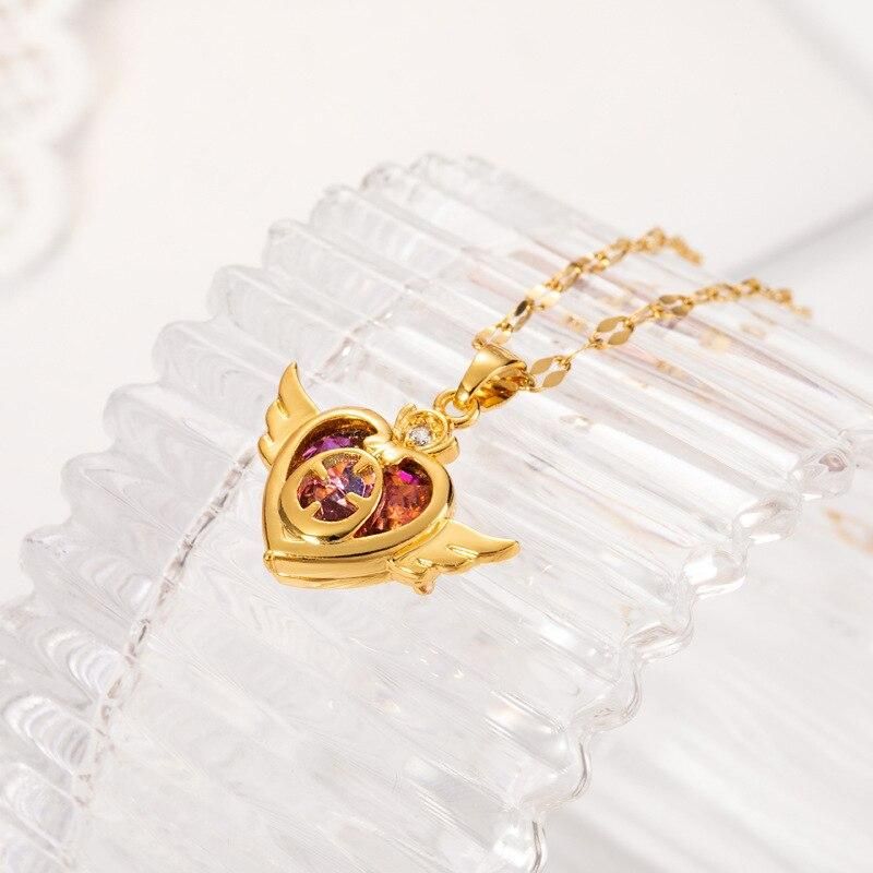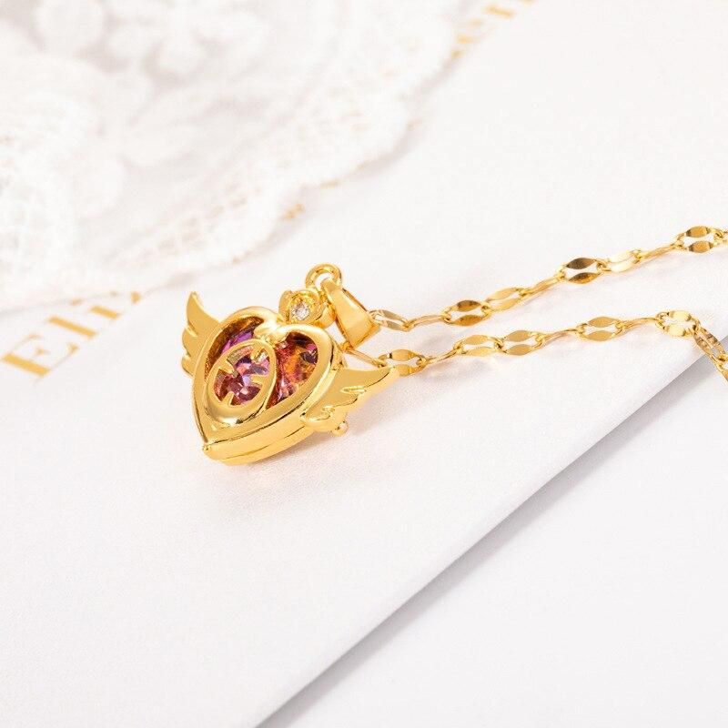 Buy Design Sense Colorful Crystal Angel Wings Love Heart Women Necklace Korean Fashion Female Stainless Steel Clavicle Chain Jewelry in Nigeria